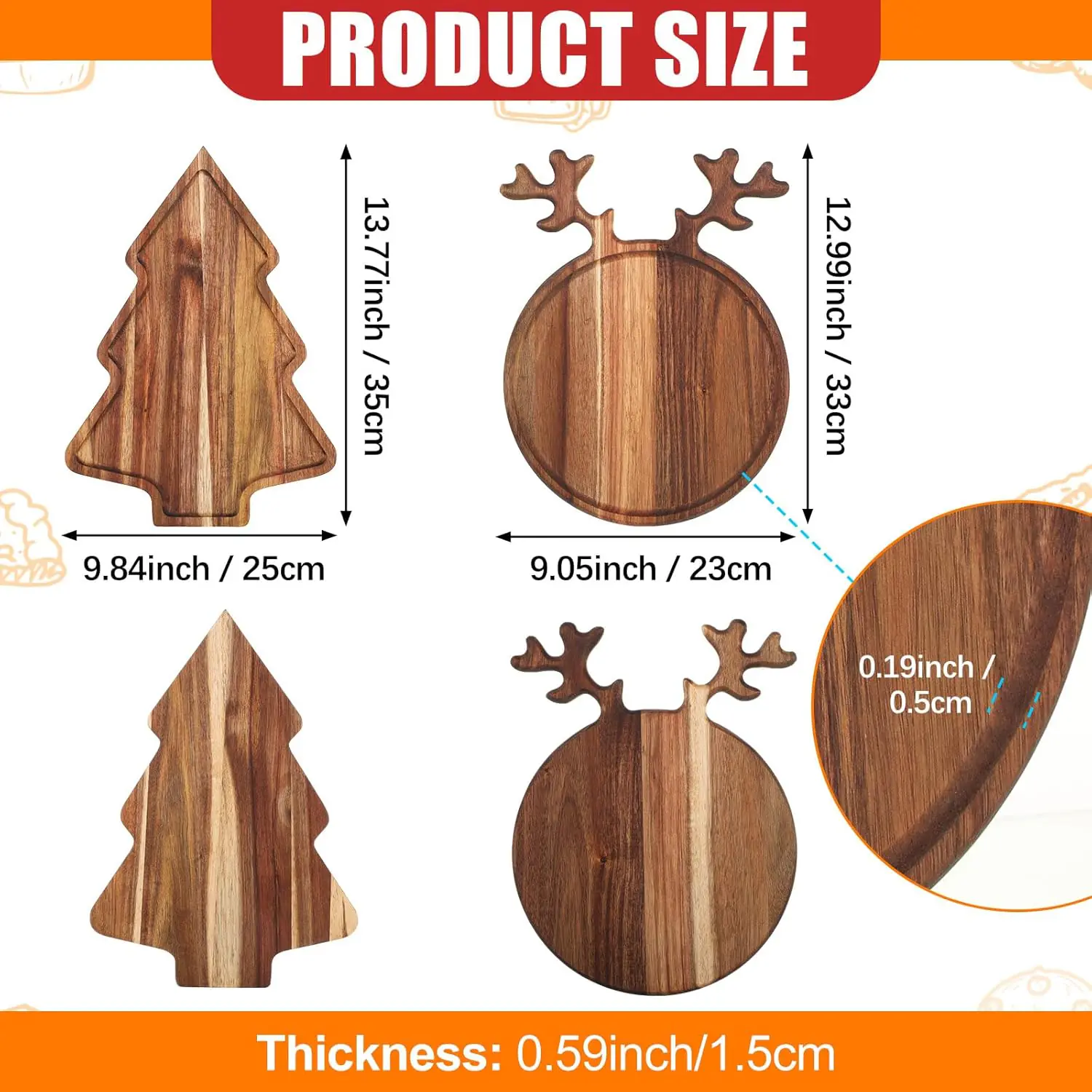 Included Components :2 x Wood serving trays (Christmas tree and reindeer shapes)