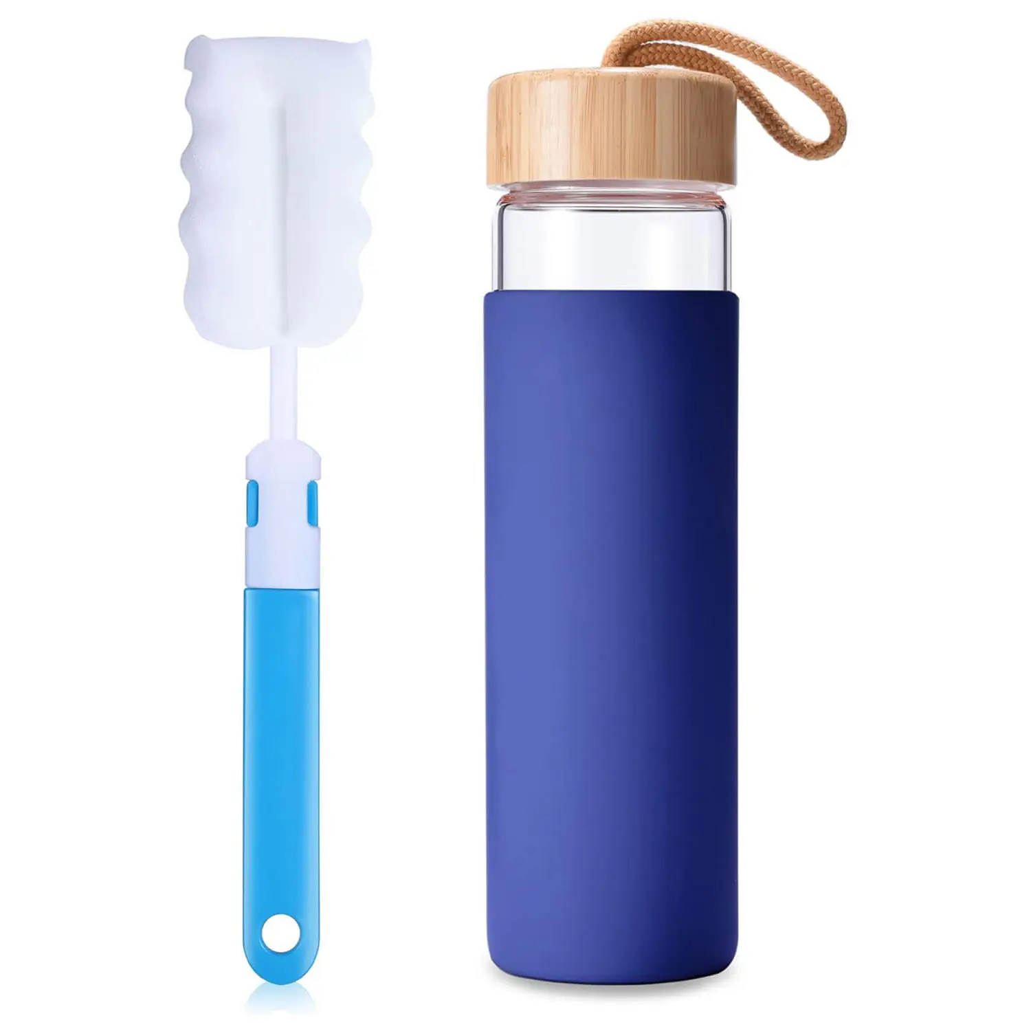 Sleeve to Drink in Style Who says a drinking bottle can’t be a fashion statement? Our bottle comes with a colored silicone sleeve in a variety of 9 attractive colors. This does not more than just look awesome—it also prevents slipping and protects the glass.