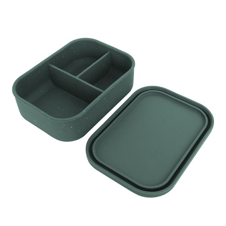 This silicone lunch box with 3 compartment, can be storage by different food, snack. The grooves on the lid can be aligned with the gap between the containers, ensuring the food compartment, food between different containers won’t mix.