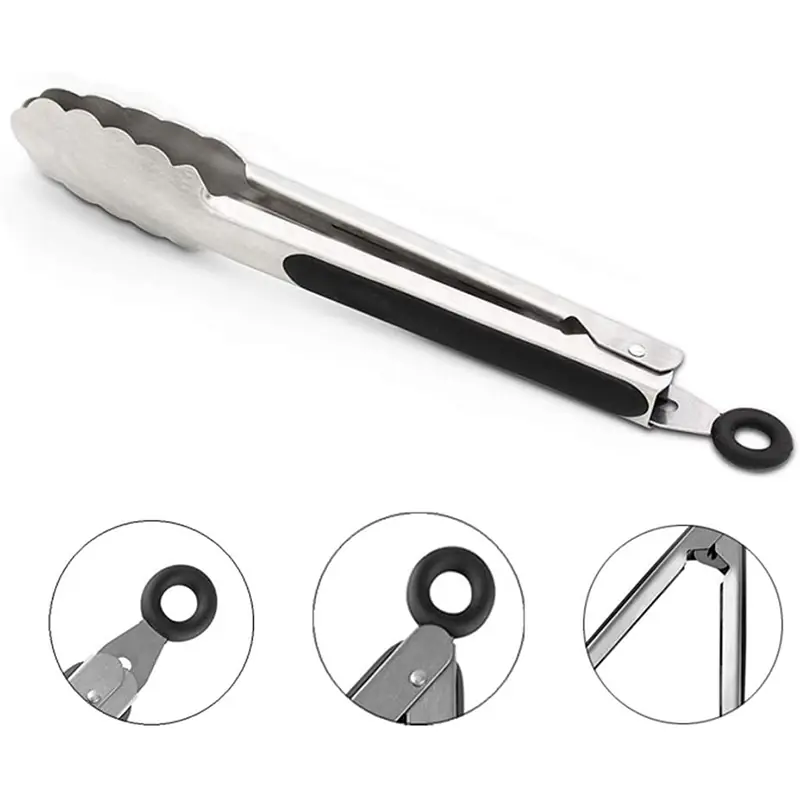 Efficient Pull Ring Lock & Hanging Loop: These kitchen tongs come with an easy-to-operate locking mechanism. Simply pull the ring to lock and push to unlock. The tongs also feature a hanging loop for convenient storage.
