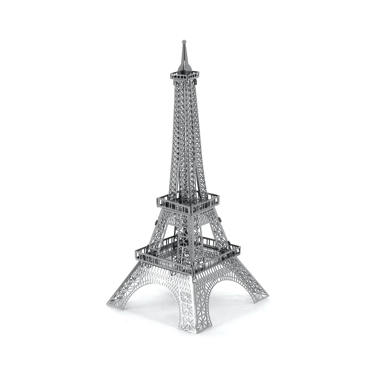 This 3D Metal Model Kit features a precision-crafted miniature replica of the Eiffel Tower, ideal for architecture enthusiasts and hobby model retailers. The unassembled kit includes metal sheets with pre-cut parts that connect without glue, offering an educational and hands-on building experience for users aged 14 and up.