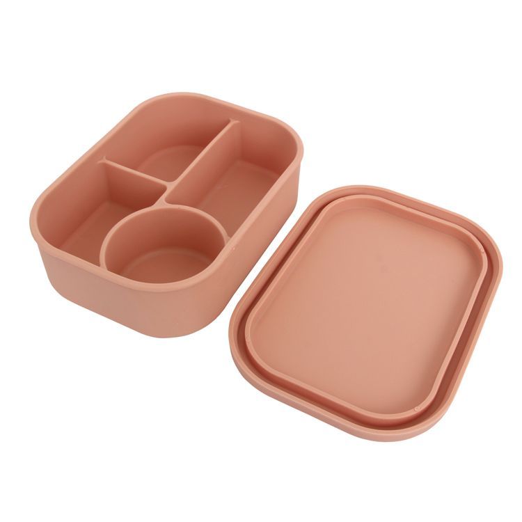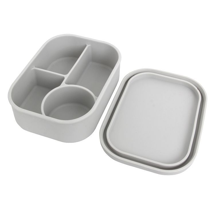 This silicone lunch box with 4 section, can be storage by different food, snack. The grooves on the lid can be aligned with the gap between the containers, ensuring the food compartment, food between different containers won’t mix.