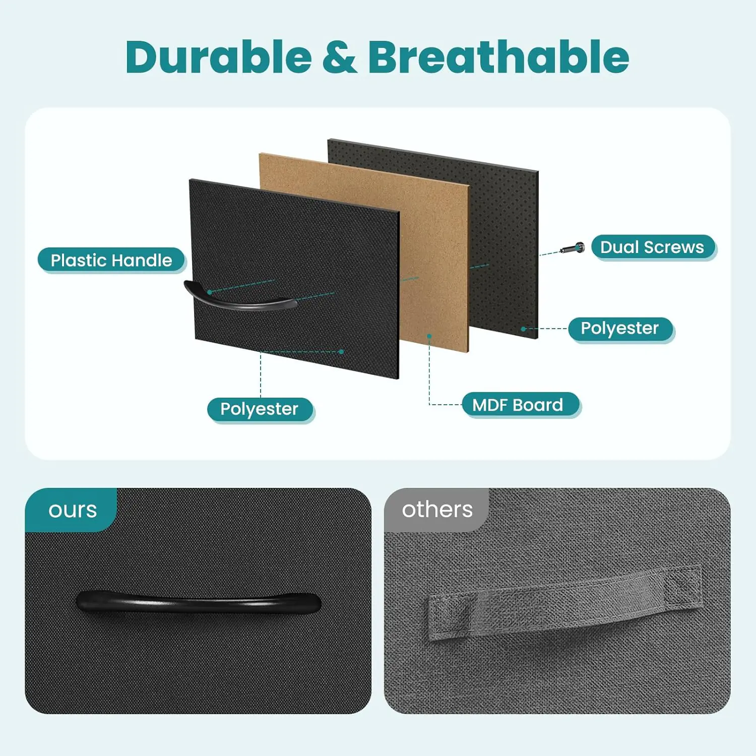 Engineered with breathable non-woven fabric drawers, MDF wood top, and a reinforced steel frame, this 5 Drawer Fabric Dresser combines lightweight construction with stability. The mix of large and medium drawer sizes accommodates varied items, and adjustable feet ensure balance on uneven floors.
