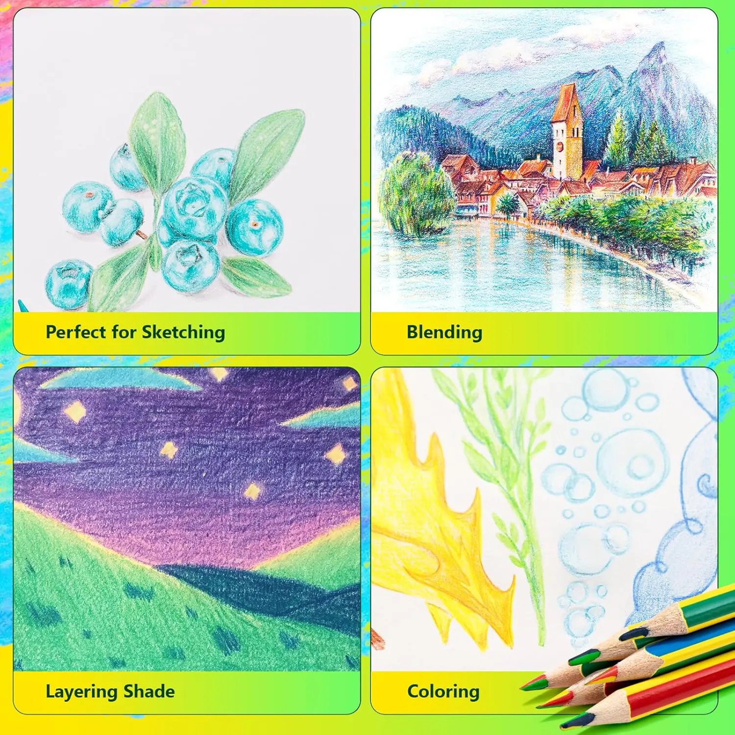 Each Rainbow Colored Pencil features a durable 4mm multi-tone core embedded in premium-grade wood, ensuring smooth blending, vibrant transitions, and resistance to breakage. The ability to create spontaneous gradients with a single pencil enhances artistic expression and efficiency, making it a unique addition to any art supply line.