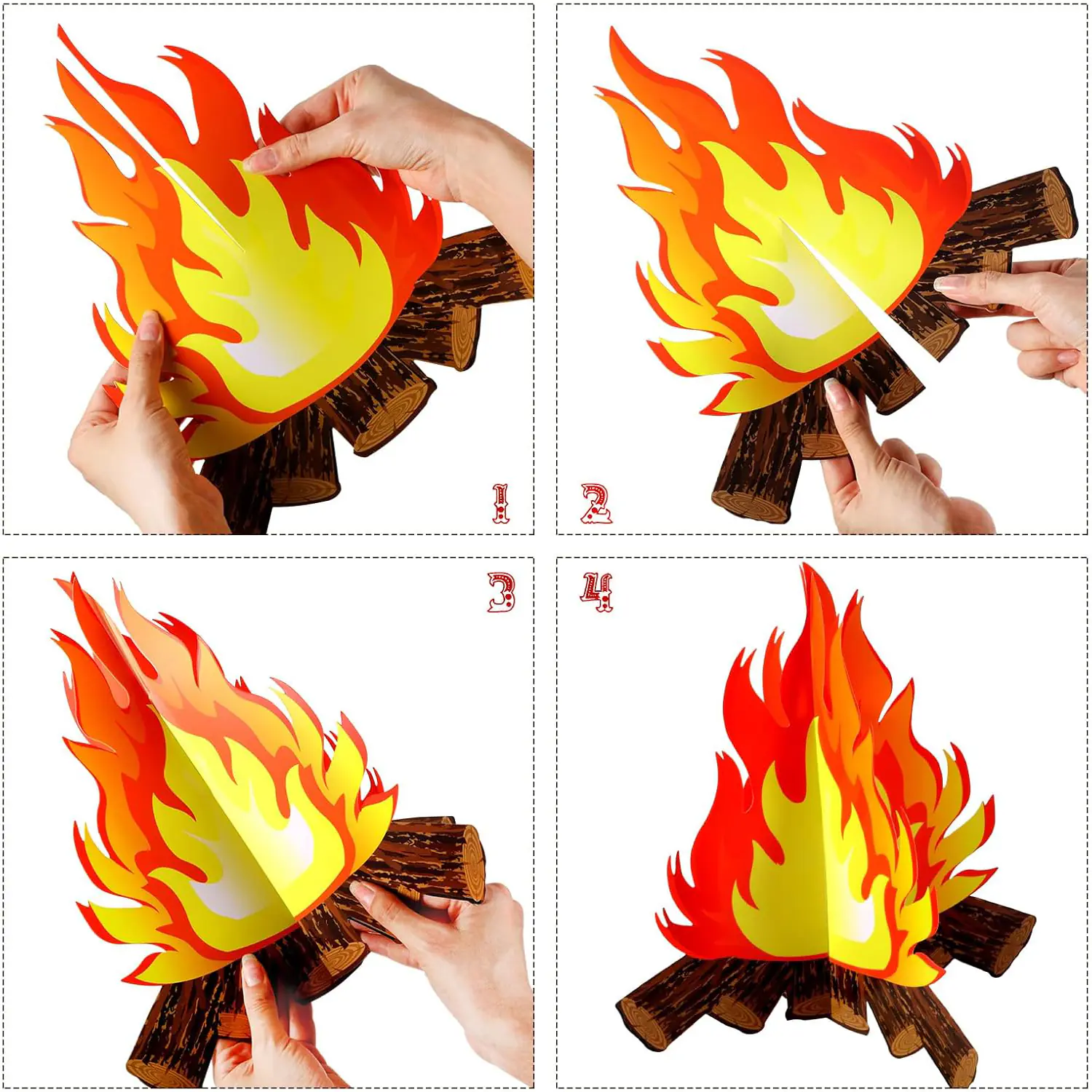 This 6-set Fake Fire Decoration package includes 12 durable cardboard pieces that assemble into realistic 3D campfire props. Measuring 12″ x 10″, these foldable and reusable flame centerpieces are ideal for imaginative indoor play or enhancing party decor with a cozy fire-themed look.