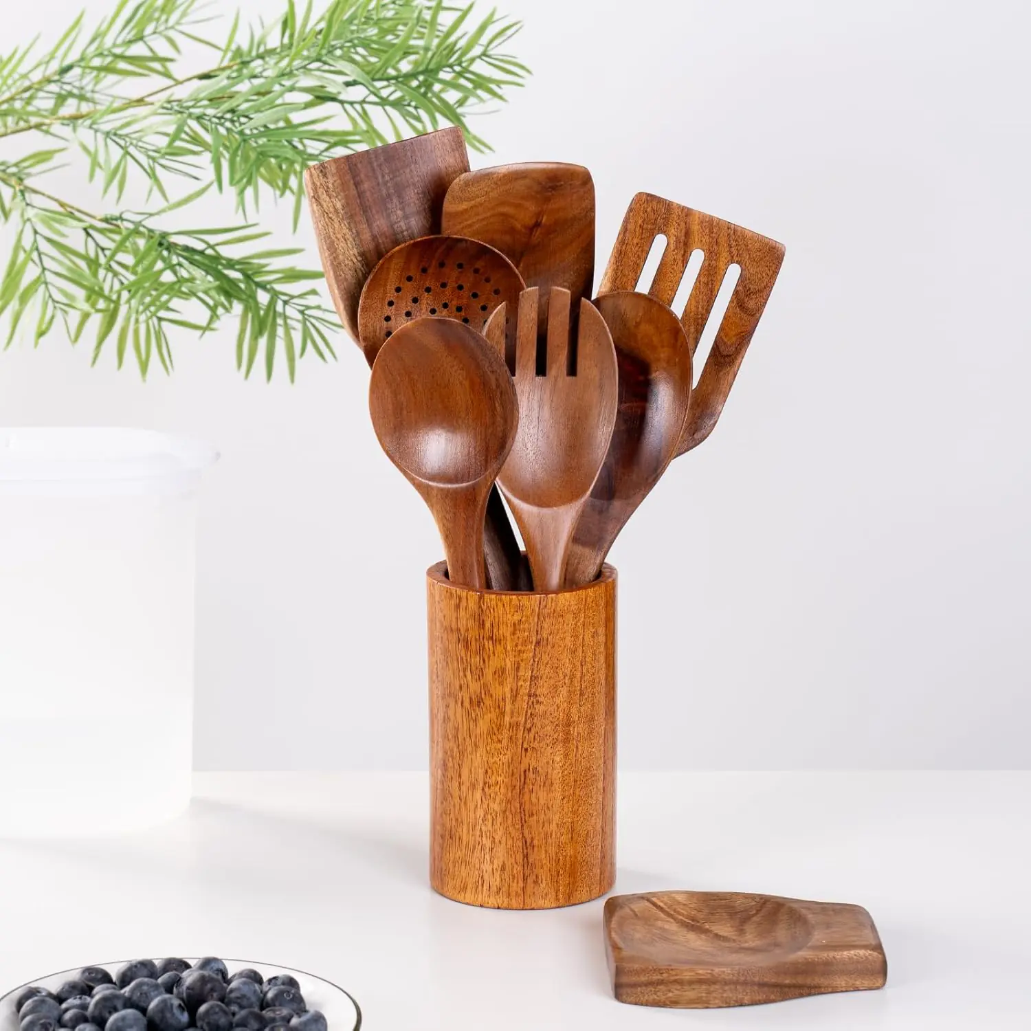 • Versatile Utensil Set: This collection includes a slotted spoon, solid spoon, slotted spatula, solid spatula, and a multi-purpose wooden spoon holder.