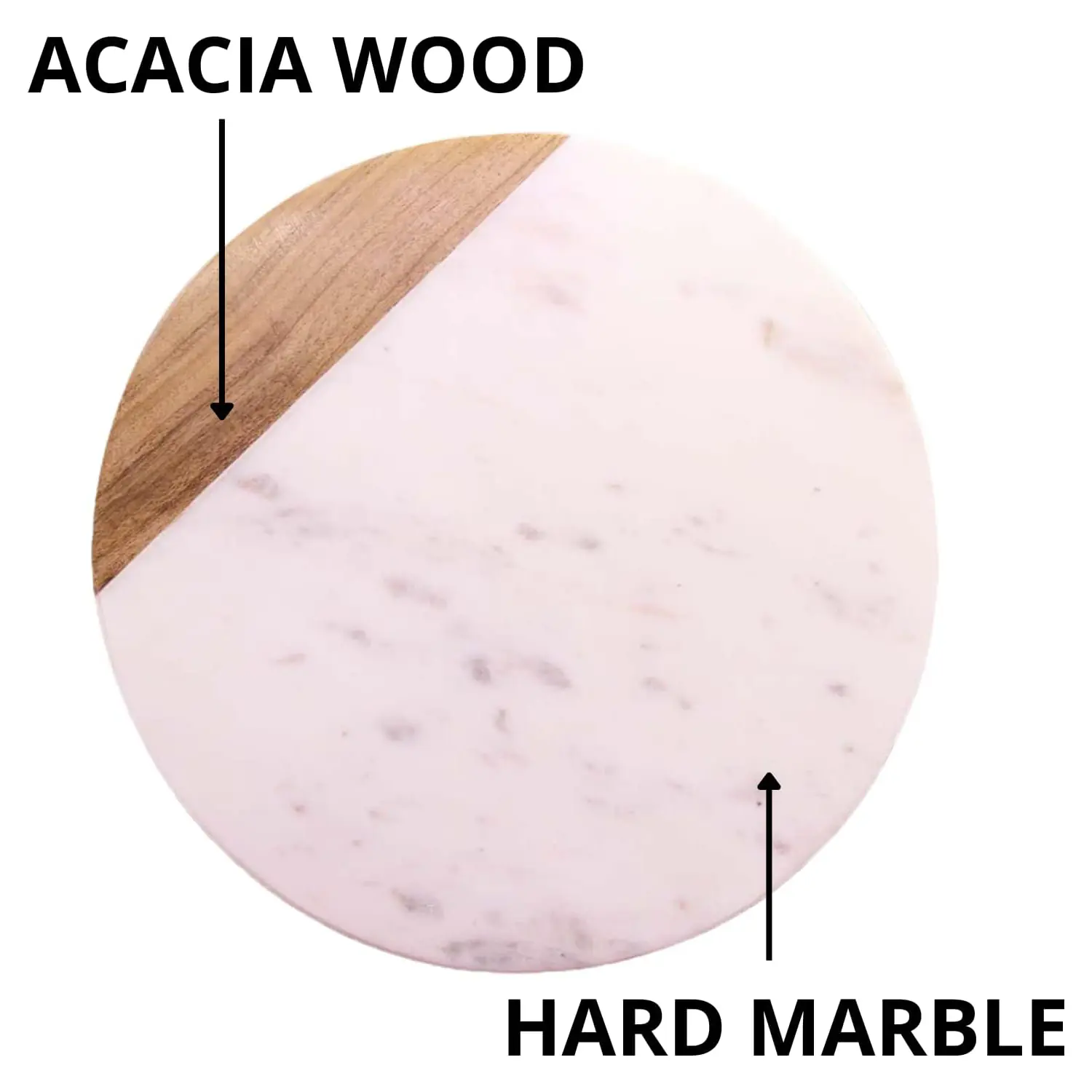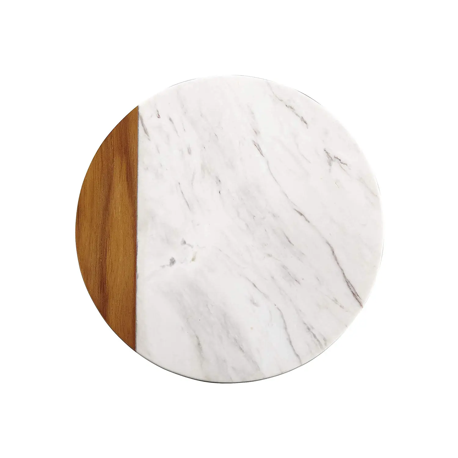 Round White Marble/Teak Wood Serving Board, 10-Inch