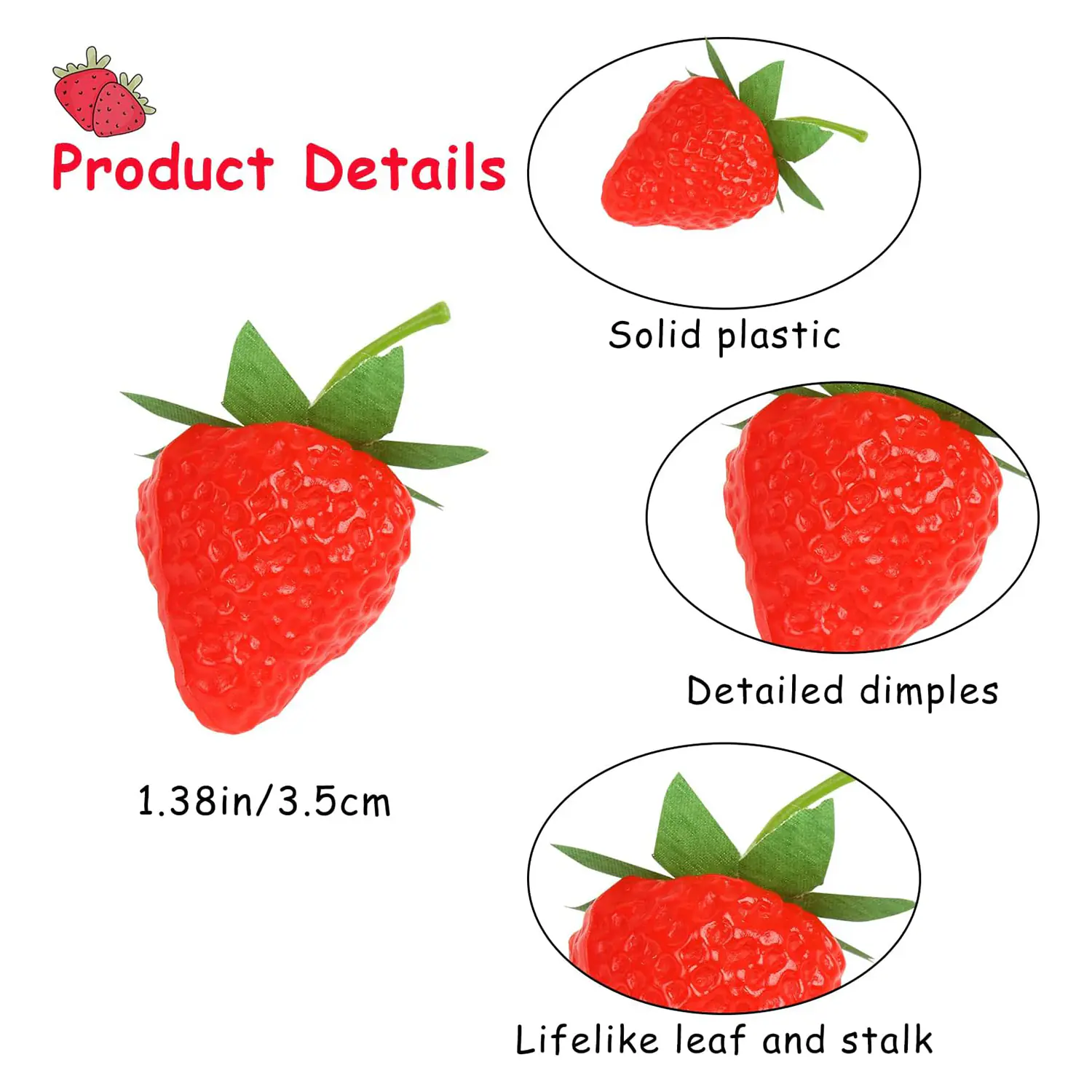 Perfect for event planners, home decorators, and craft suppliers, these faux strawberries are widely used in photo props, fruit platters, kitchen centerpieces, teaching aids, floral arrangements, and bakery display projects. Their realistic texture and vibrant color make them a standout addition to seasonal or themed environments.