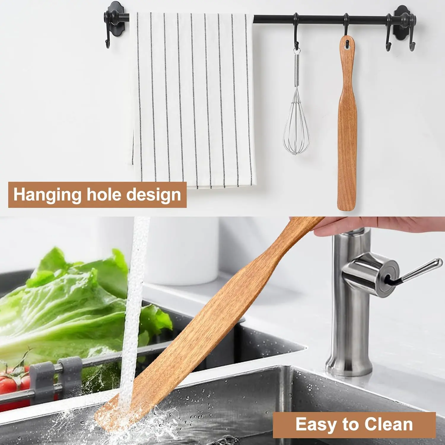 This skinny spurtle works for a lot of different things in the kitchen. Imagine a sturdy, narrow wooden paddle with a nice handle on it and you can imagine all of the uses for such a tool.