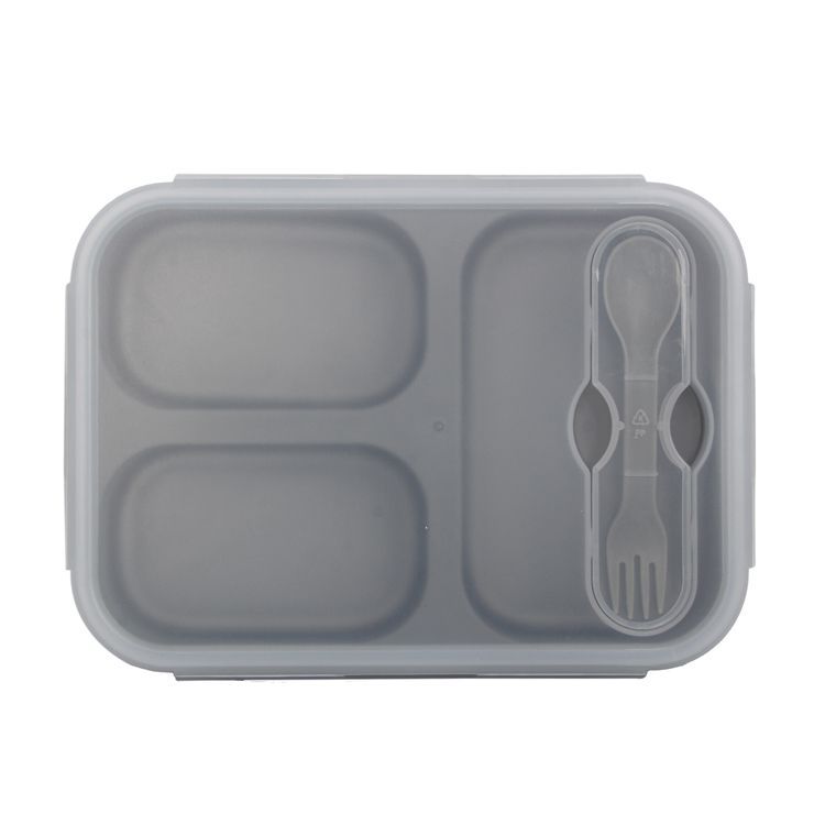 We are professional collapsible silicone food container supplier from China. This bento lunch box includes 3 section, very reusable for kids and adults. Perfect size for preserving fruits, vegetable and lunch. Super convenience with storageable fork and spoon, you don’t need to take an extra set of tableware.