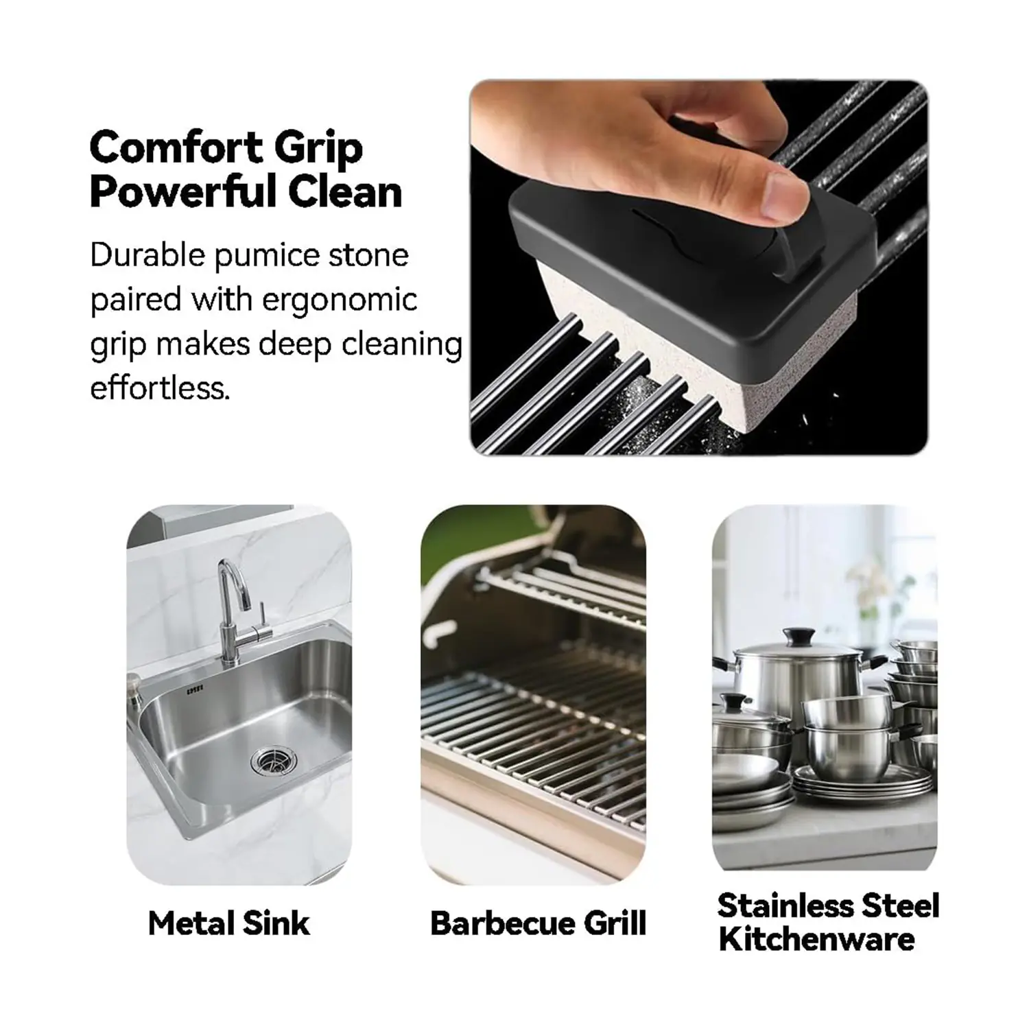 Crafted from eco-friendly pumice stone, each grill cleaning brick features a bristle-free, non-scratch design that’s safe on cooking surfaces. The reusable ergonomic handle offers enhanced grip and reduces fatigue, making tough scrubbing easier and more efficient for professional use.