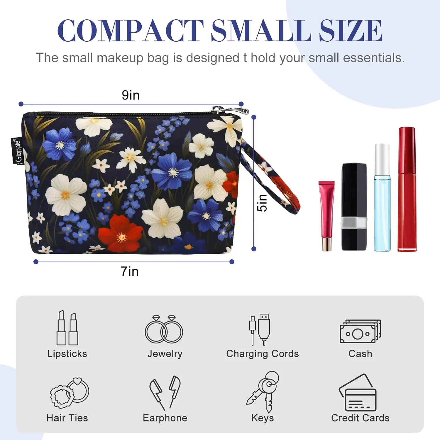 Size: 7.08*5.11 inches, portable and lightweight. The small cosmetic bag can hold some small cosmetics and skin care products, it can be used for change, lipstick, makeup tools, etc.