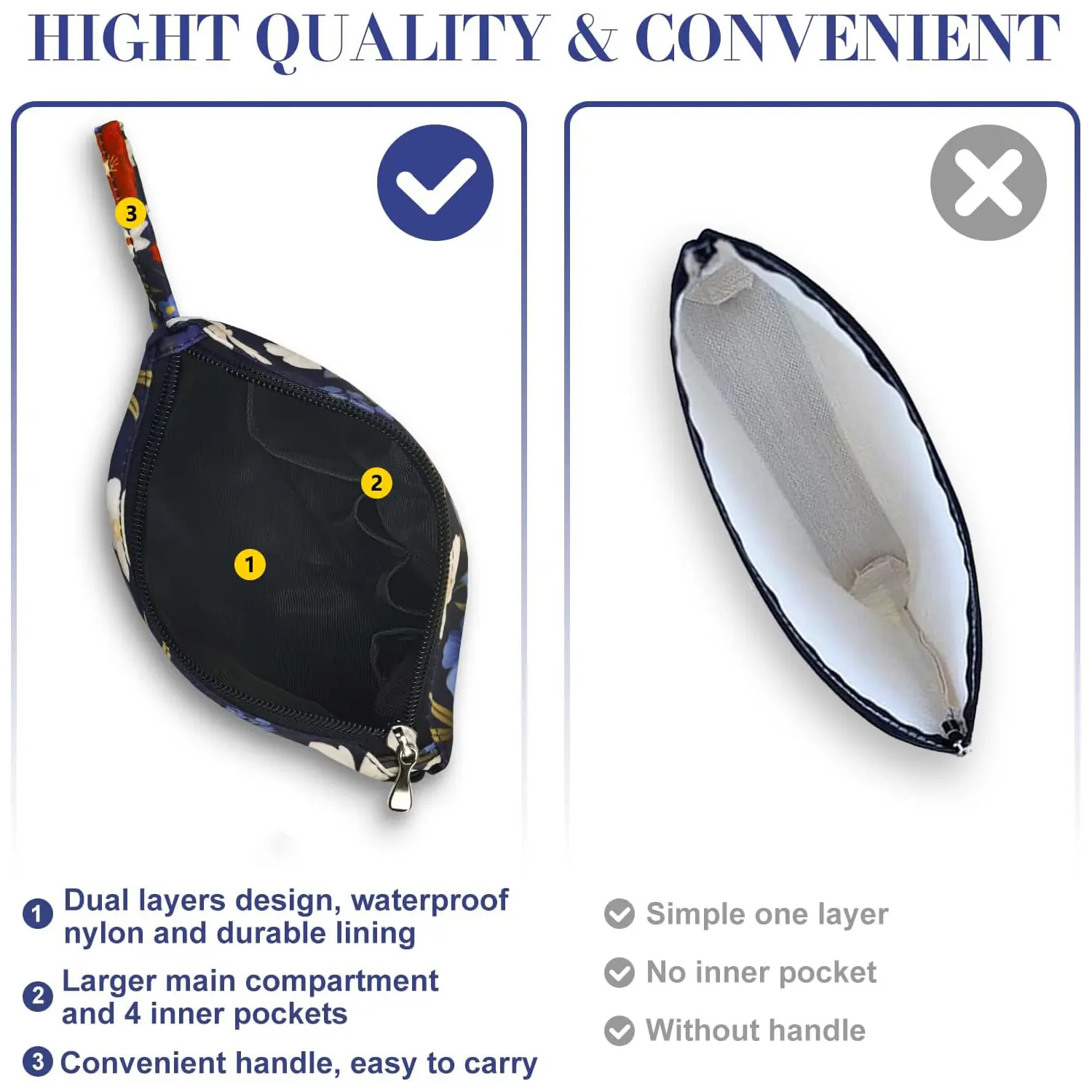 The mini makeup case built-in 4 inner pockets and a main compartment are perfect for purse or everyday make up pouch.