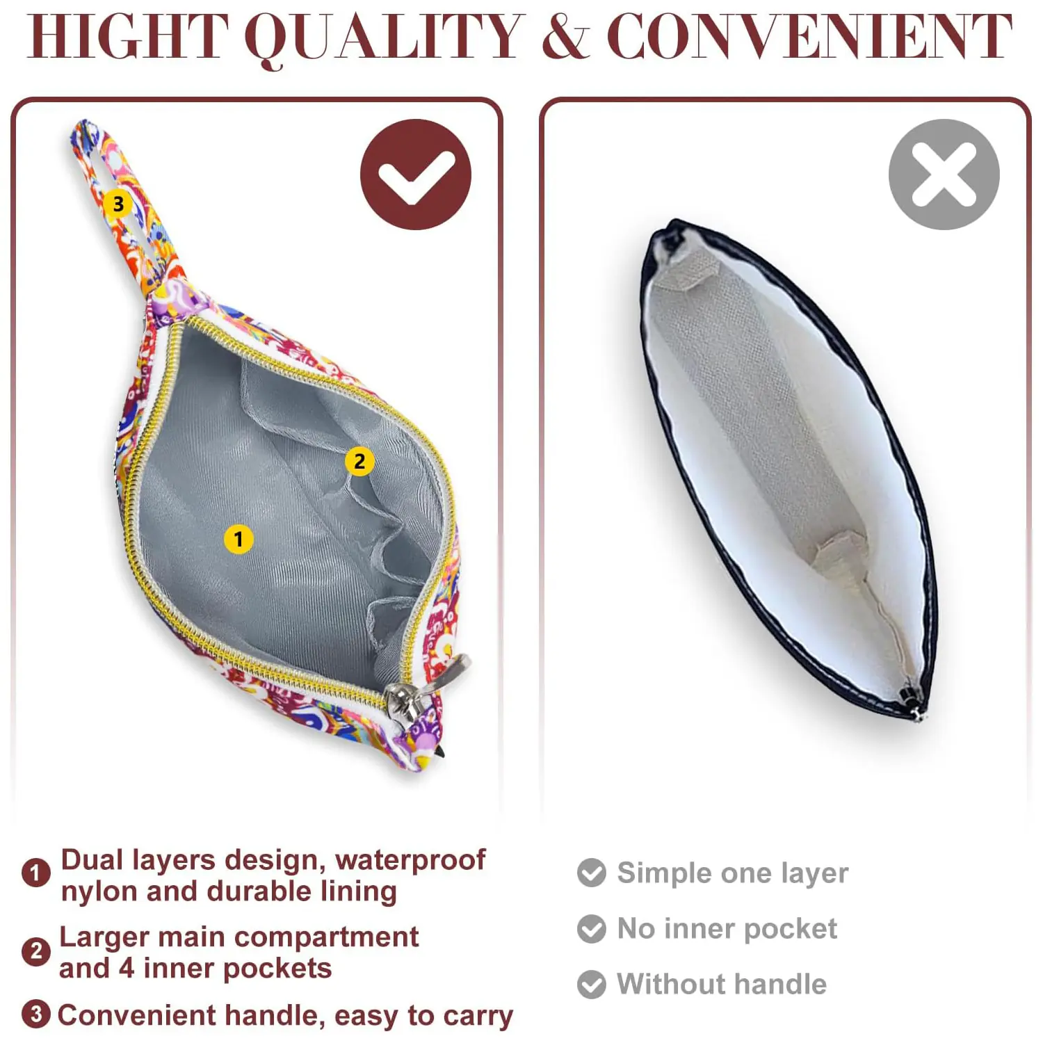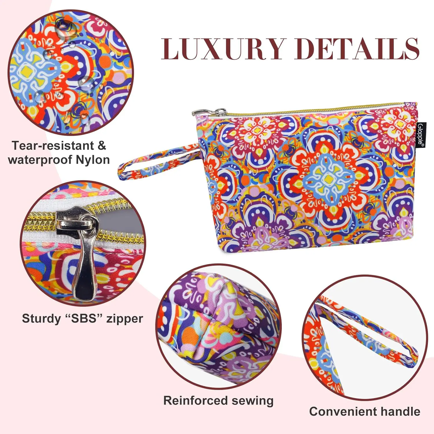 The mini makeup case built-in 4 inner pockets and a main compartment are perfect for purse or everyday make up pouch.