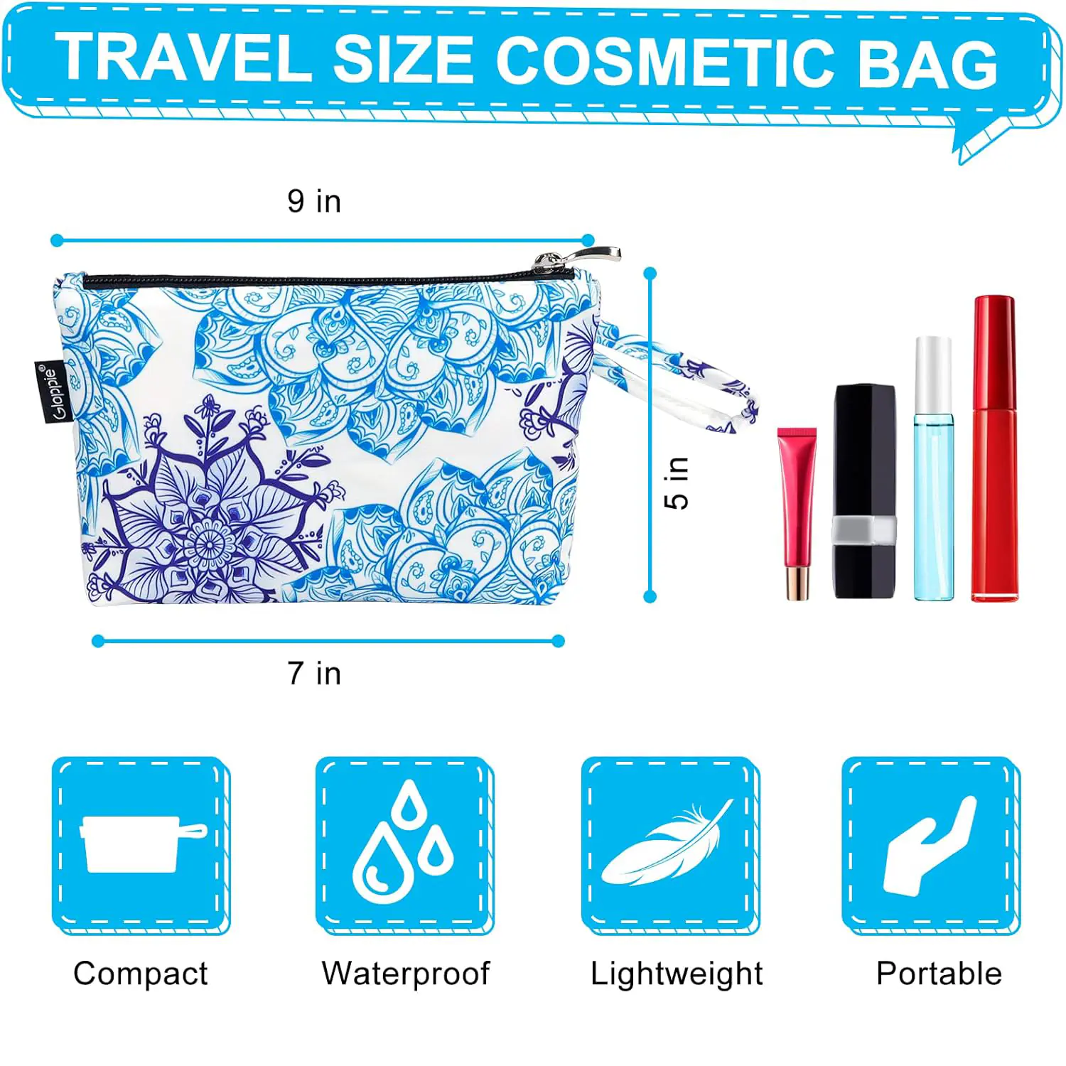Size: 7.08*5.11 inches, portable and lightweight. The small cosmetic bag can hold some small cosmetics and skin care products, it can be used for change, lipstick, makeup tools, etc.