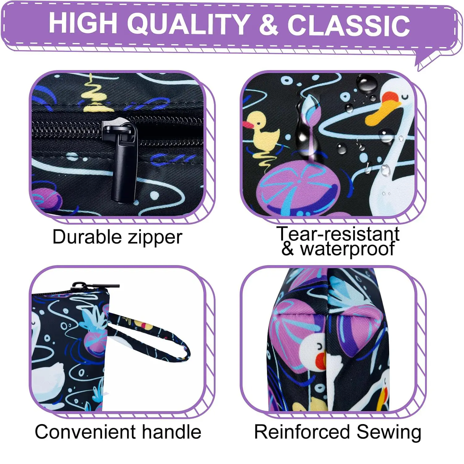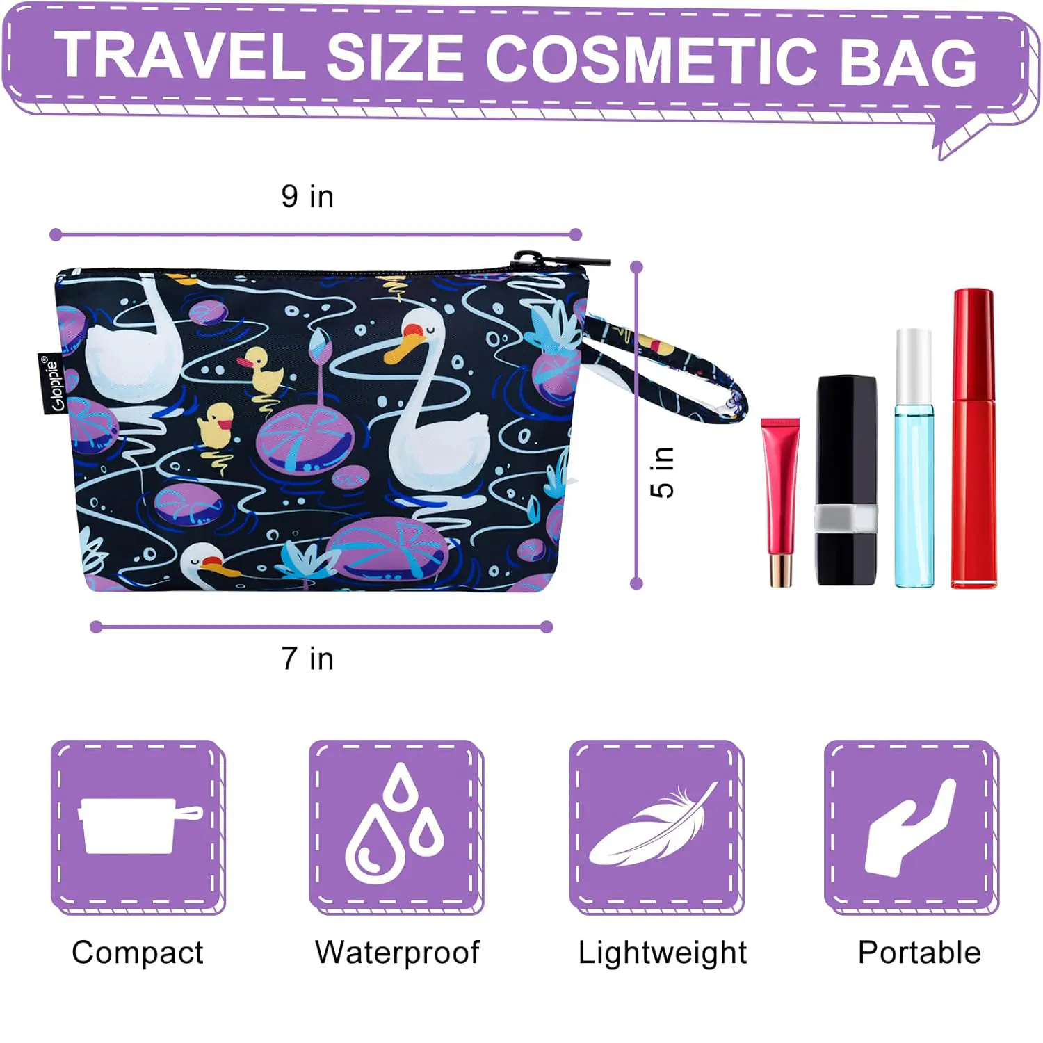 Size: 7.08*5.11 inches, portable and lightweight. The small cosmetic bag can hold some small cosmetics and skin care products, it can be used for change, lipstick, makeup tools, etc.