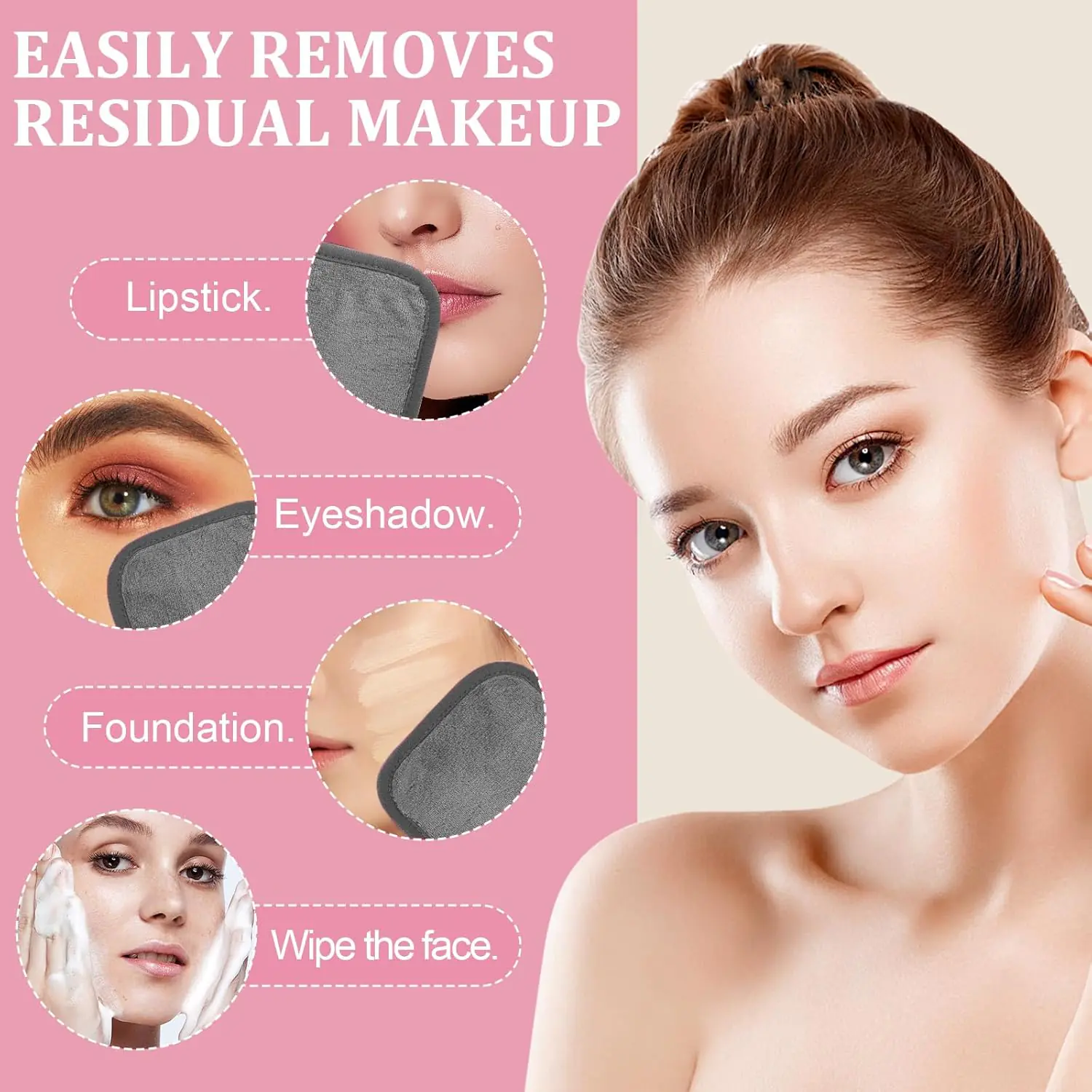 These makeup remover pads are ideal for deeper cleansing and exfoliation, help effectively wiping away all types of makeup, including foundation, Lipstick, eye shadows,simple makeup. Use it with warm water, gently rub across your face and the makeup comes right off. This is a great addition to your cleansing routine!