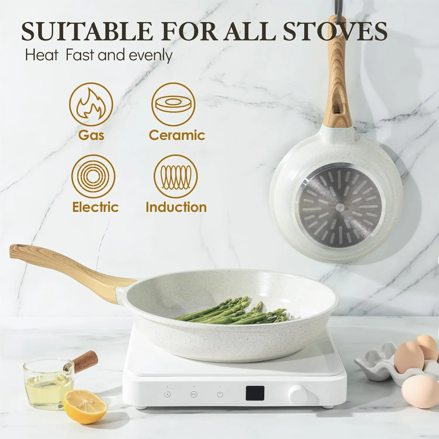 Safe & Health – Free of PFAS, PFOA, lead and cadmium, makes your meal healthier. No harmful fume even overheating.