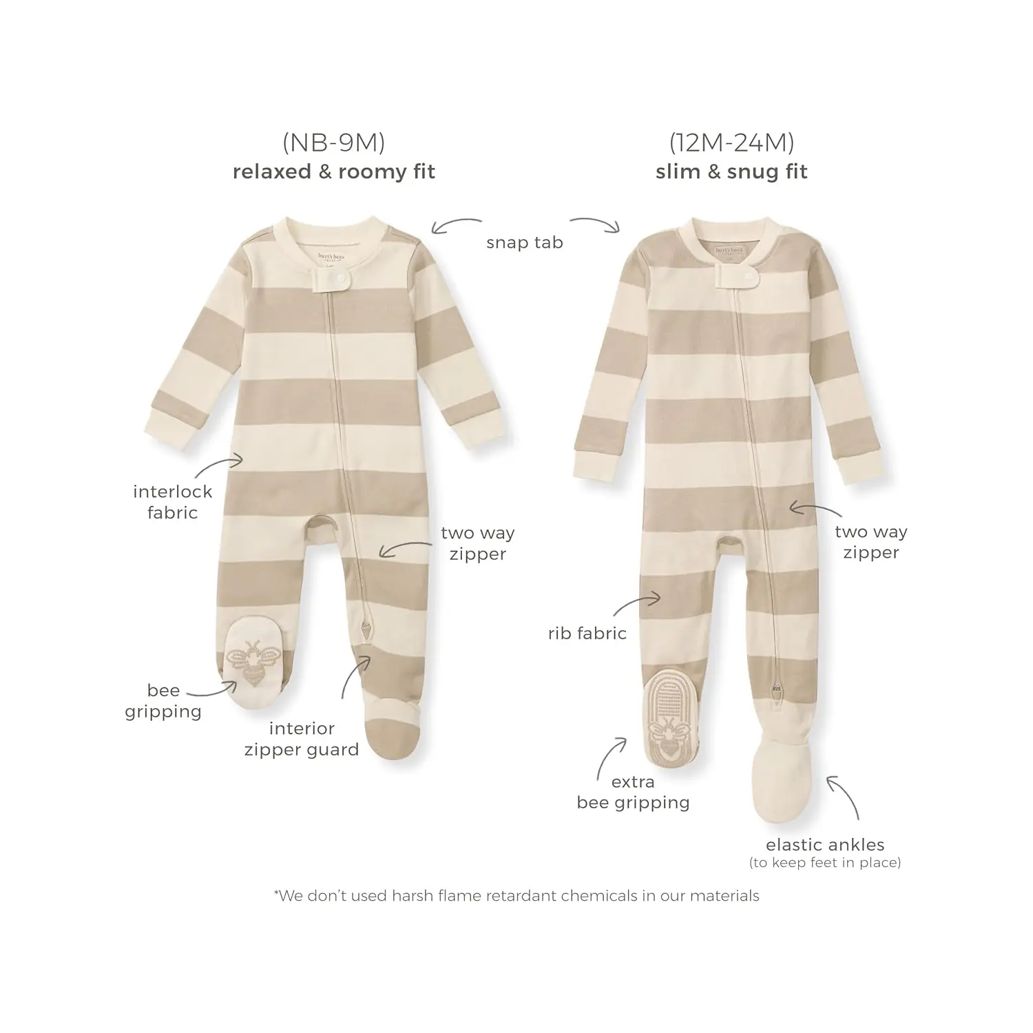 Features include a diagonal zip closure for quick diaper changes, a safety snap at the neckline, and non-slip soles for early walkers. The stretch cuffs and elastic ankles keep the garment securely in place, while the combed organic cotton ensures lasting softness and durability. A standout addition to any organic baby pajamas wholesale selection offering comfort and function.