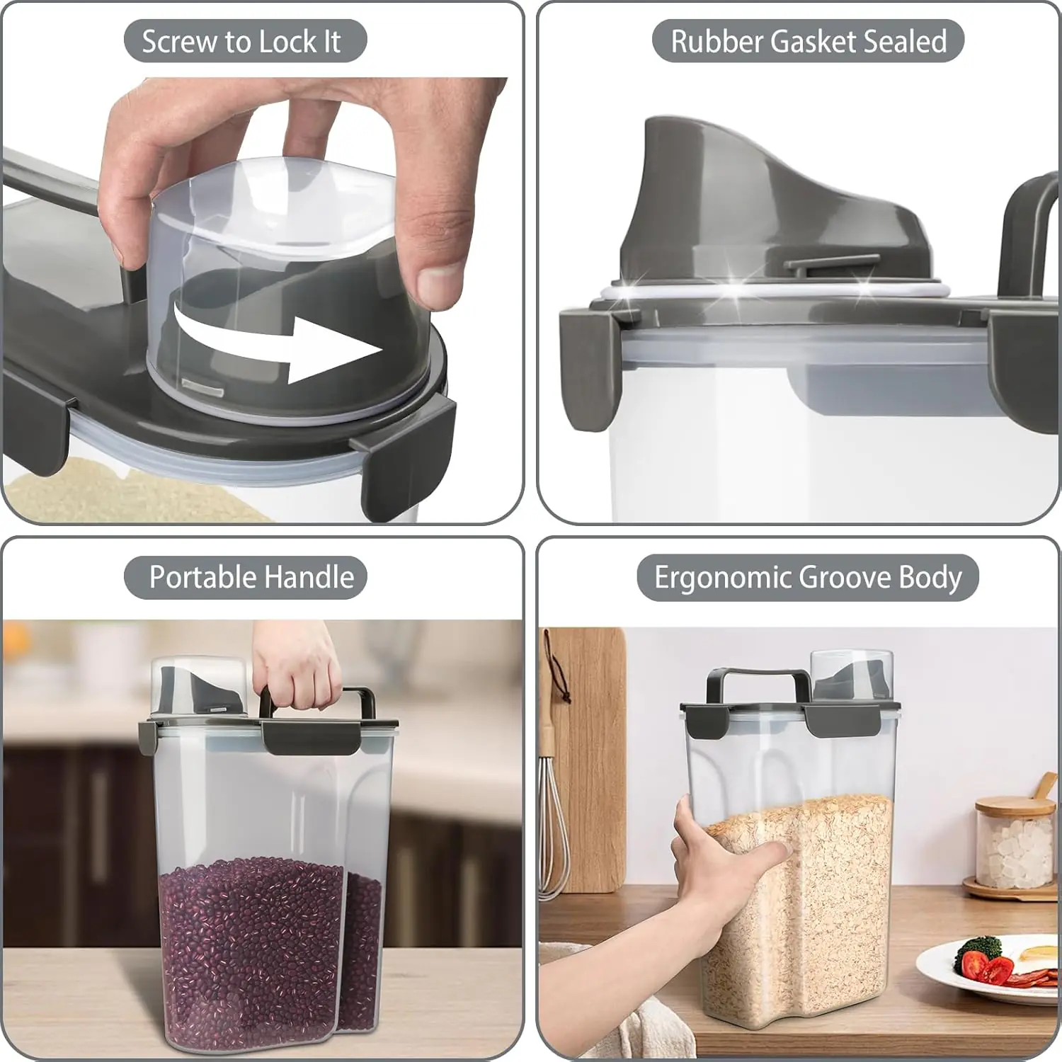 ●The ergonomic groove & portable handle make airtight cereal containers storage convenient for you to carry when walking or traveling