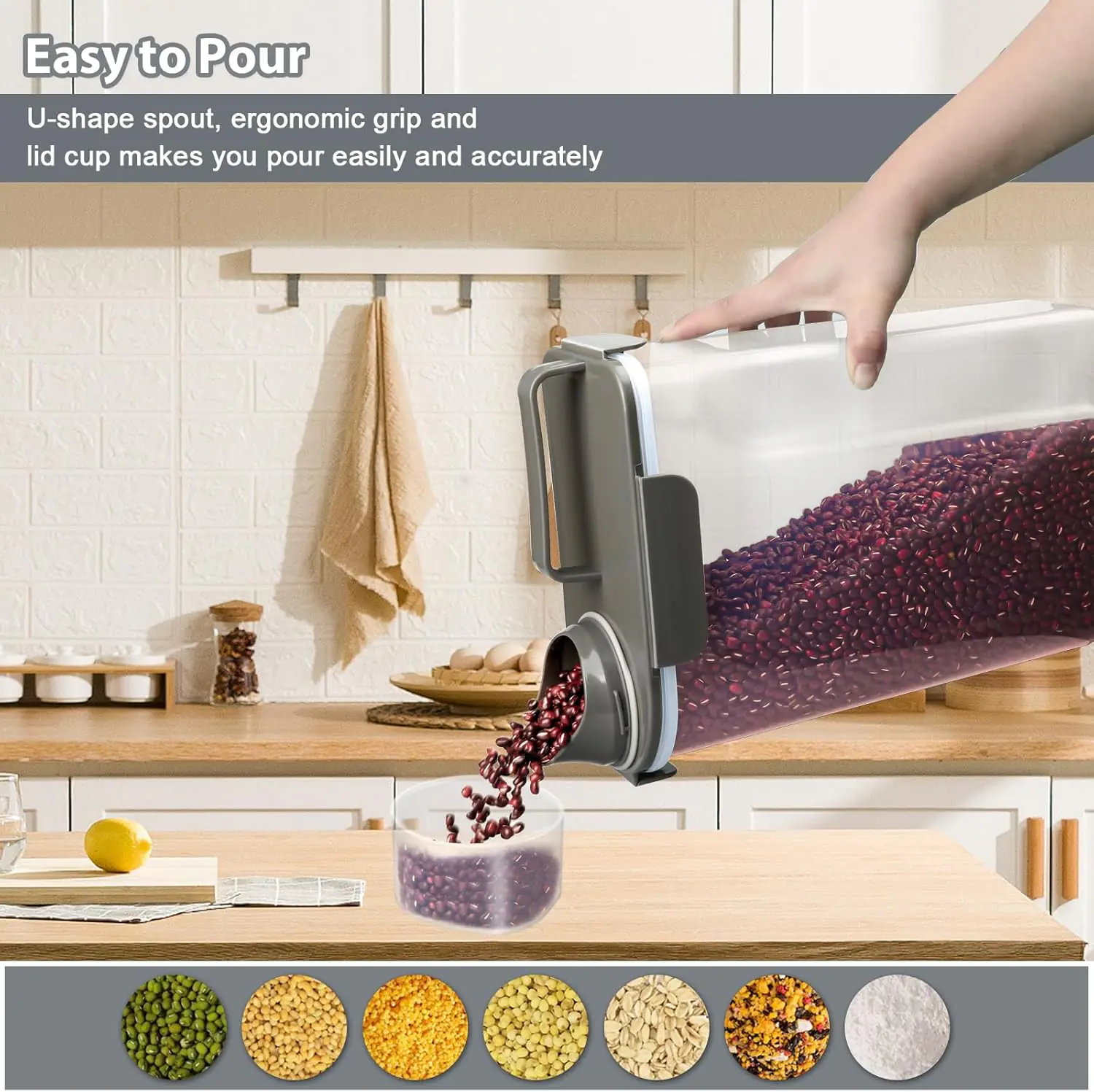 Rice Holder Dispenser Pet Cat Dog Food Storage Container Rice Bucket with Measuring Cup Dog Treat Container Dispensador De Arroz Contenedor Para Arroz Oatmeal Containers With Lids Bird Seed Storage Container Rice Jar Powder Detergent Container Cereal Keeper Flour Grain Storage Container