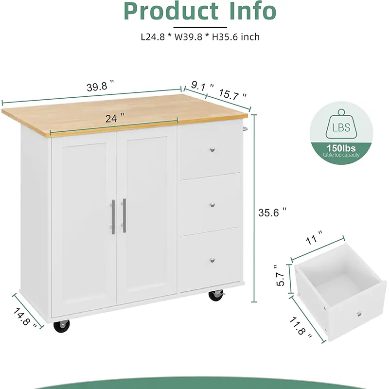 • Portable and Functional: Use it as a rolling island cart, breakfast bar, or additional storage—perfect for a variety of needs.