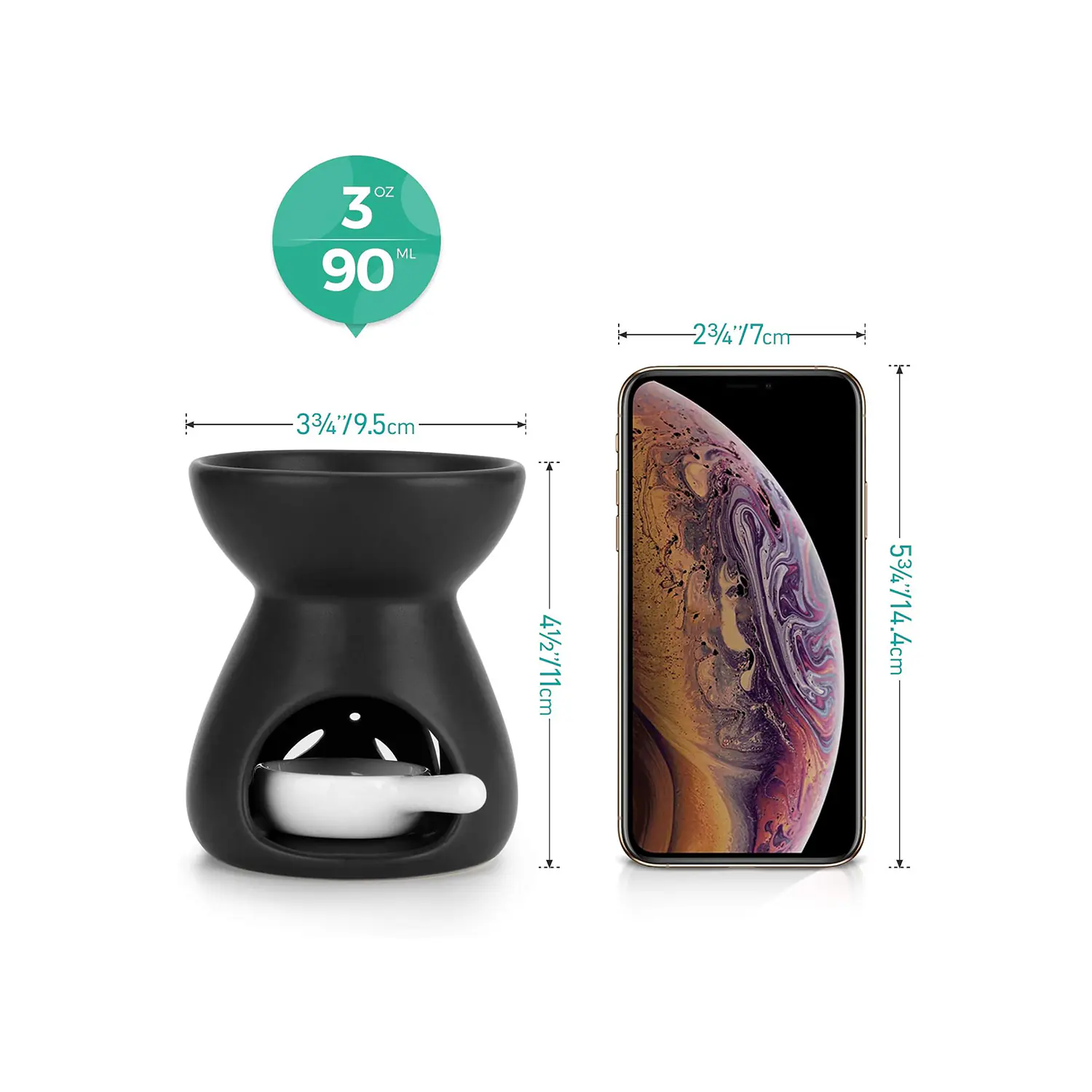 Each ceramic burner is crafted from high-fired porcelain with a glossy mineral glaze, ensuring durability and aesthetic appeal. The large capacity bowl holds more oil or wax for longer diffusion, while the included handled spoon ensures safe candle placement. A hollow cutout design allows light to shine through, adding visual warmth to any space.