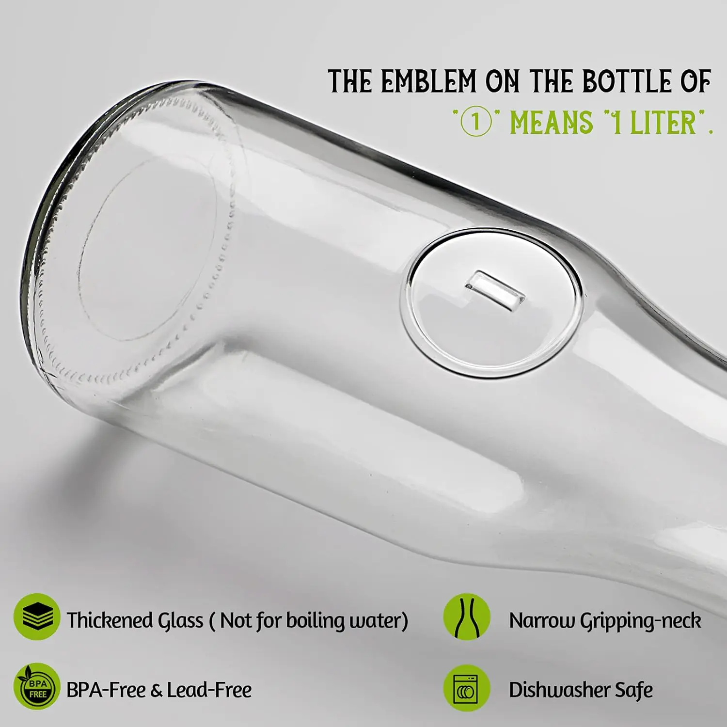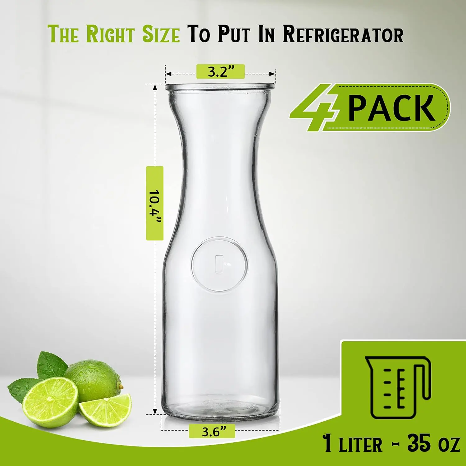 Set of 4 Glass Carafe with Lid, 1 Liter Beverage Serveware Carafe, Clear Glass Pitcher for Mimosa Bar, Brunch, Cold Water, Juice, Milk, Iced Tea, Lemonade