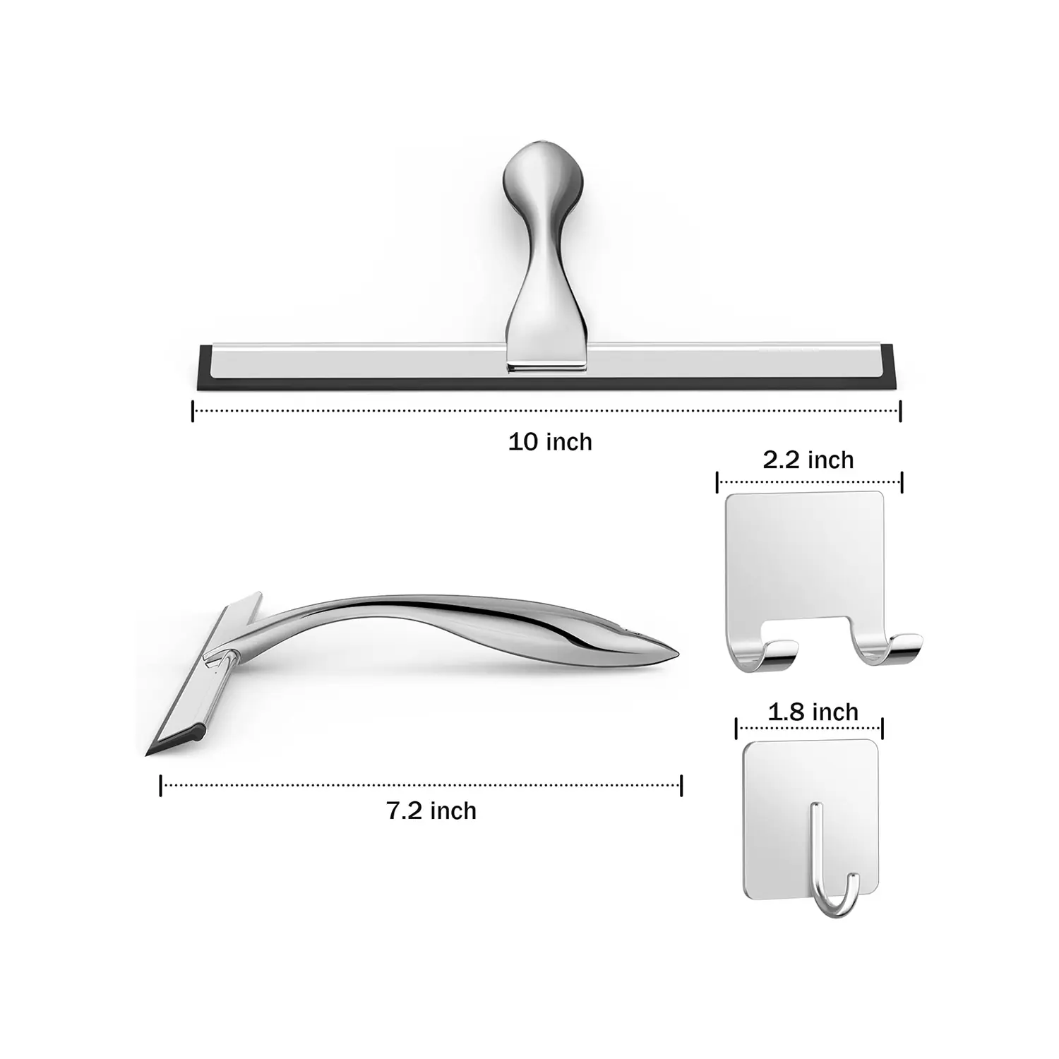 This all-purpose shower squeegee features a 10-inch rust-resistant stainless steel handle and precision-cut silicone blade, ideal for streak-free cleaning of shower glass doors, windows, mirrors, tiles, and car windshields. Designed to deliver efficient, quick water and soap removal in both home and commercial use.