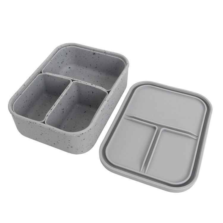 This silicone lunch box with 3 removable containers, can be storage by different food, snack. The grooves on the lid can be aligned with the gap between the containers, ensuring the food compartment, food between different containers won’t mix.