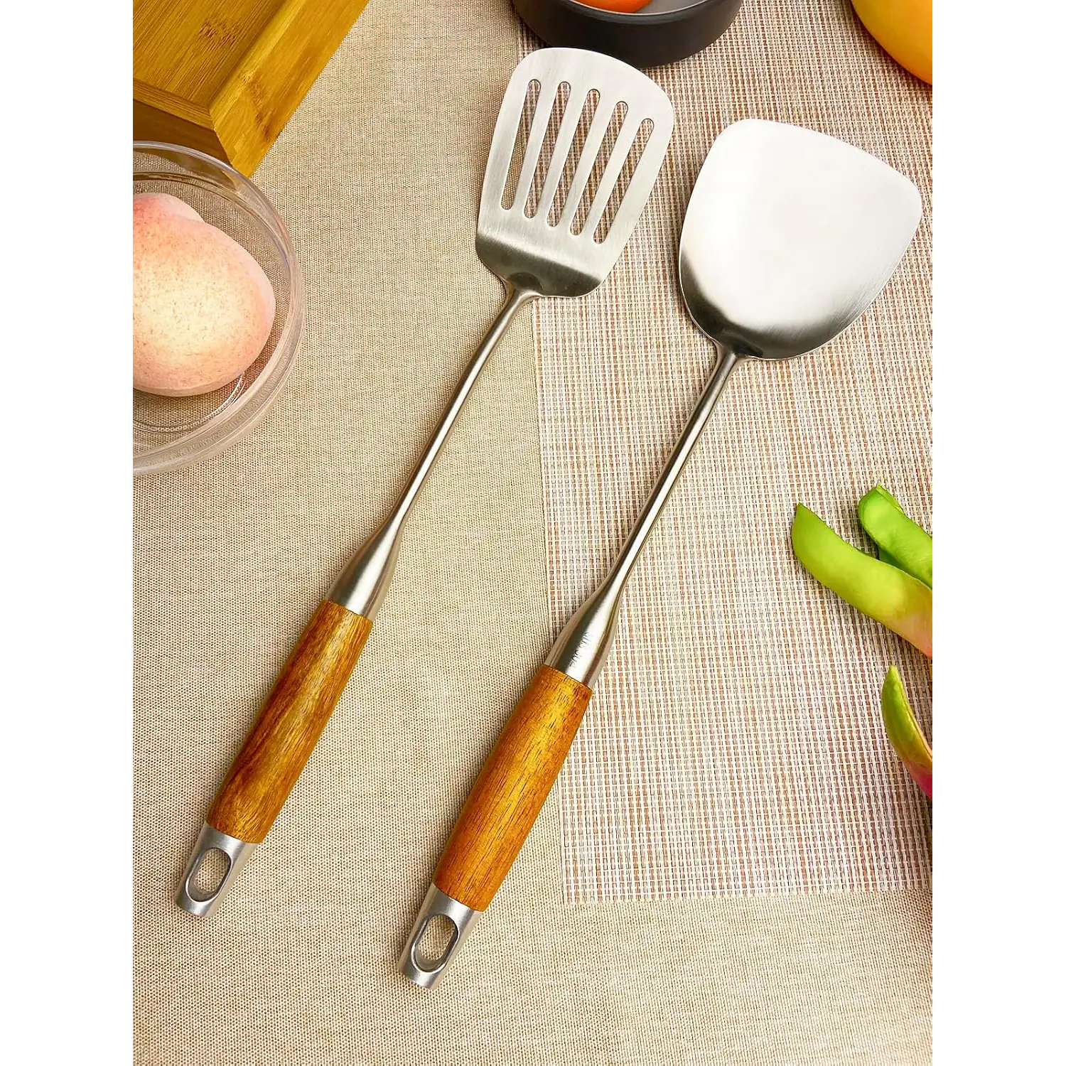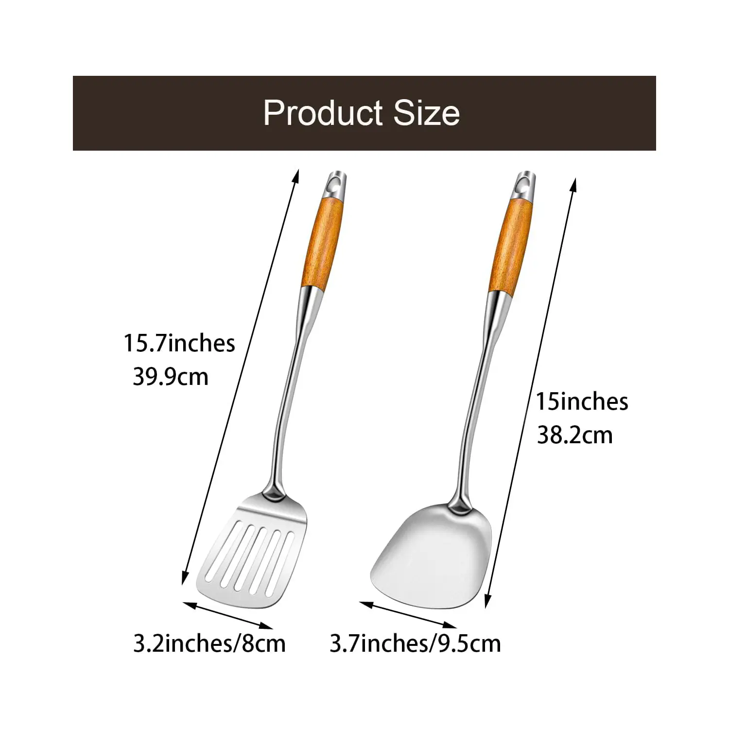 Our long-handled metal spatula has a rounded wooden handle, which is not only anti-scalding and non-slip, but also has a very comfortable grip, allowing you to cook easily!