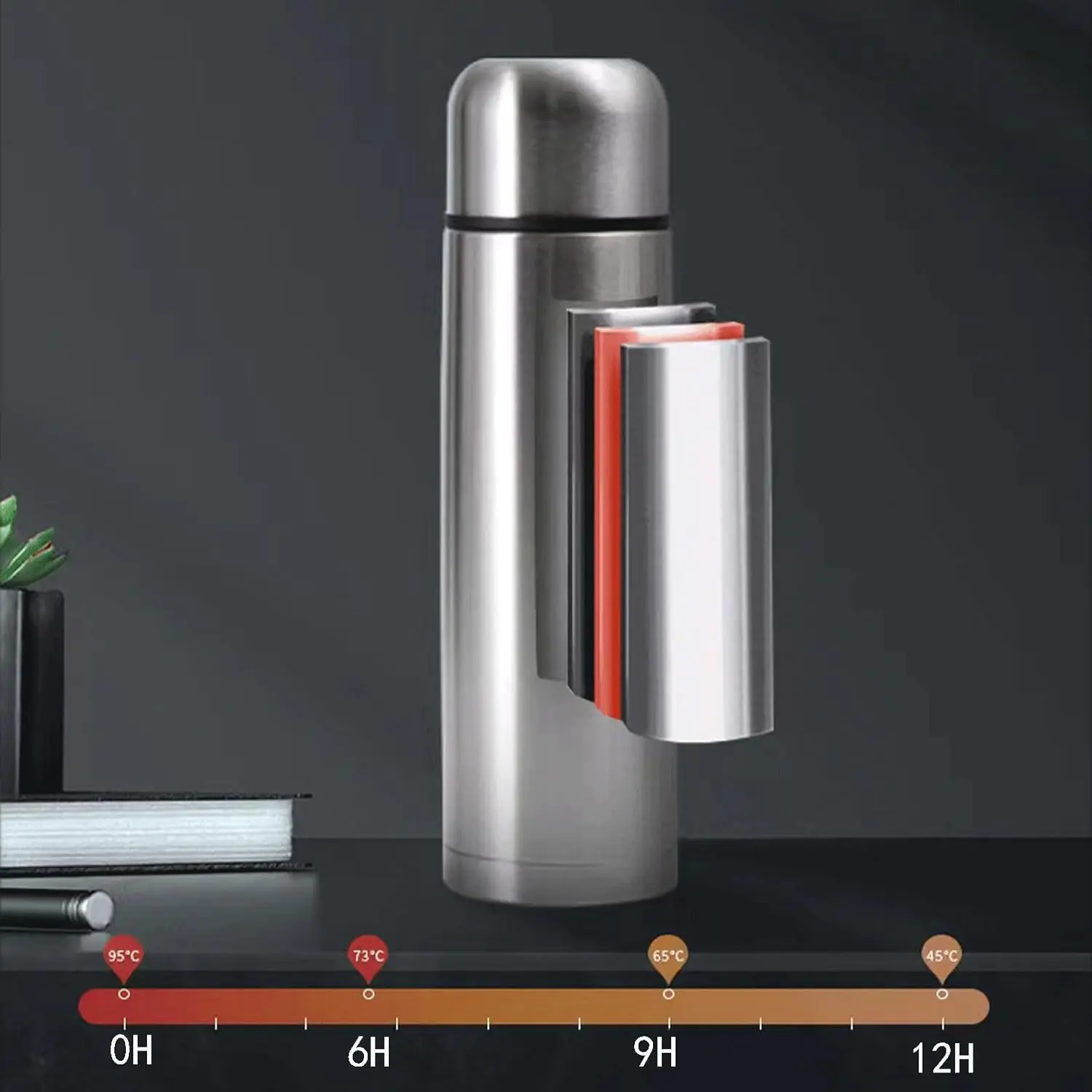 Built with double-wall vacuum insulation, this Thermal Bottle keeps beverages hot or cold for up to 12 hours. The screw-on leak-proof lid doubles as a cup, ideal for sharing drinks or easy sipping on the move. BPA-free and odorless, it ensures a clean taste with every use. Easy to clean and rustproof, it’s perfect for daily or professional use.