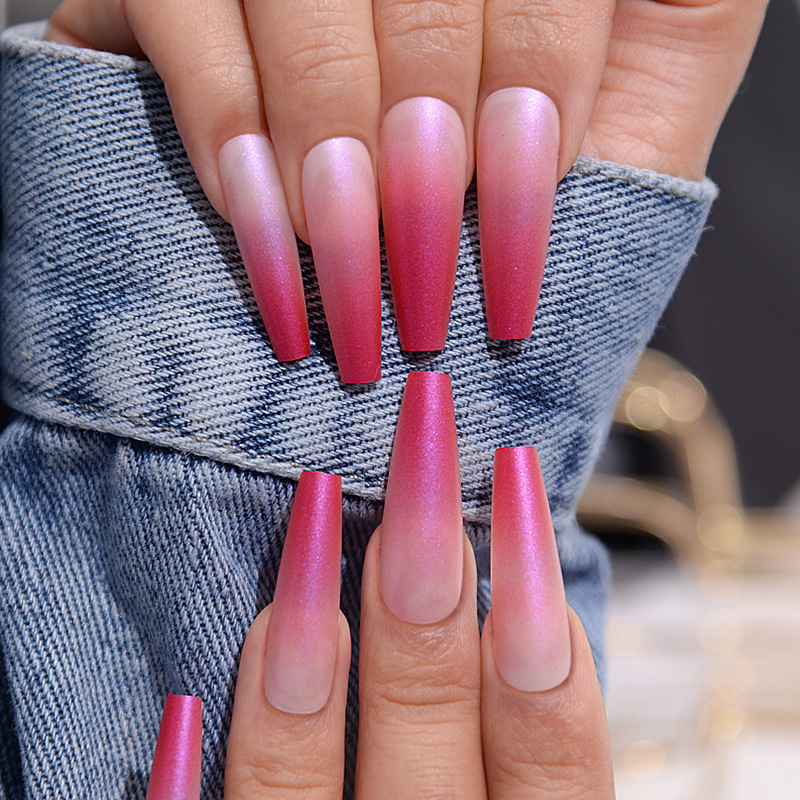 We are wholesale 24 pcs false  nail for woman supplier in Ningbo, China. This item  is made up of 24 fake nail pieces with gradient. The gradient of pink can satisfy every girl’s girlish heart, and is suitable for a variety of different occasions, such as parties, birthday parties, Christmas and so on.