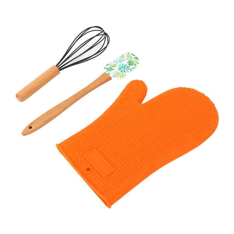 We are professional wholesale 3pcs baking set supplier from China. This baking set includes whisk, spatula, gloves, all of them are necessary tools for your baking time. They are made from silicone, which can withstand up to 480℉ normally and 600 ℉ in a quick time. No melting, no warping, no worries! It will be a perfect choice and gift for every baking lover.