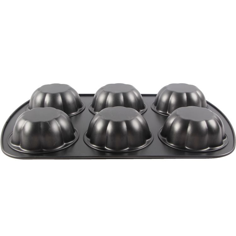 We are professional wholesale 6 cups muffin pan supplier from China. This baking pan is made of carbon steel, premium non-stick for baking cupcakes. Bring convenient for you baking time.
