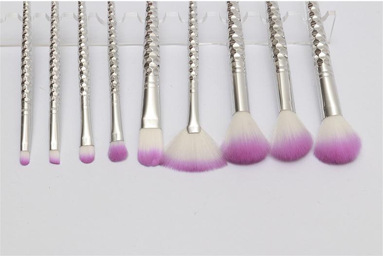 Our 9-count makeup brushes are very soft and comfortable. The bristles of the makeup brush are made of high-quality synthetic nylon bristles, which will not cause any irritation to the skin. In addition, the bristles of this makeup brush are stitched colors, and the top of the bristles is a unique purple color, which is a bit different.
