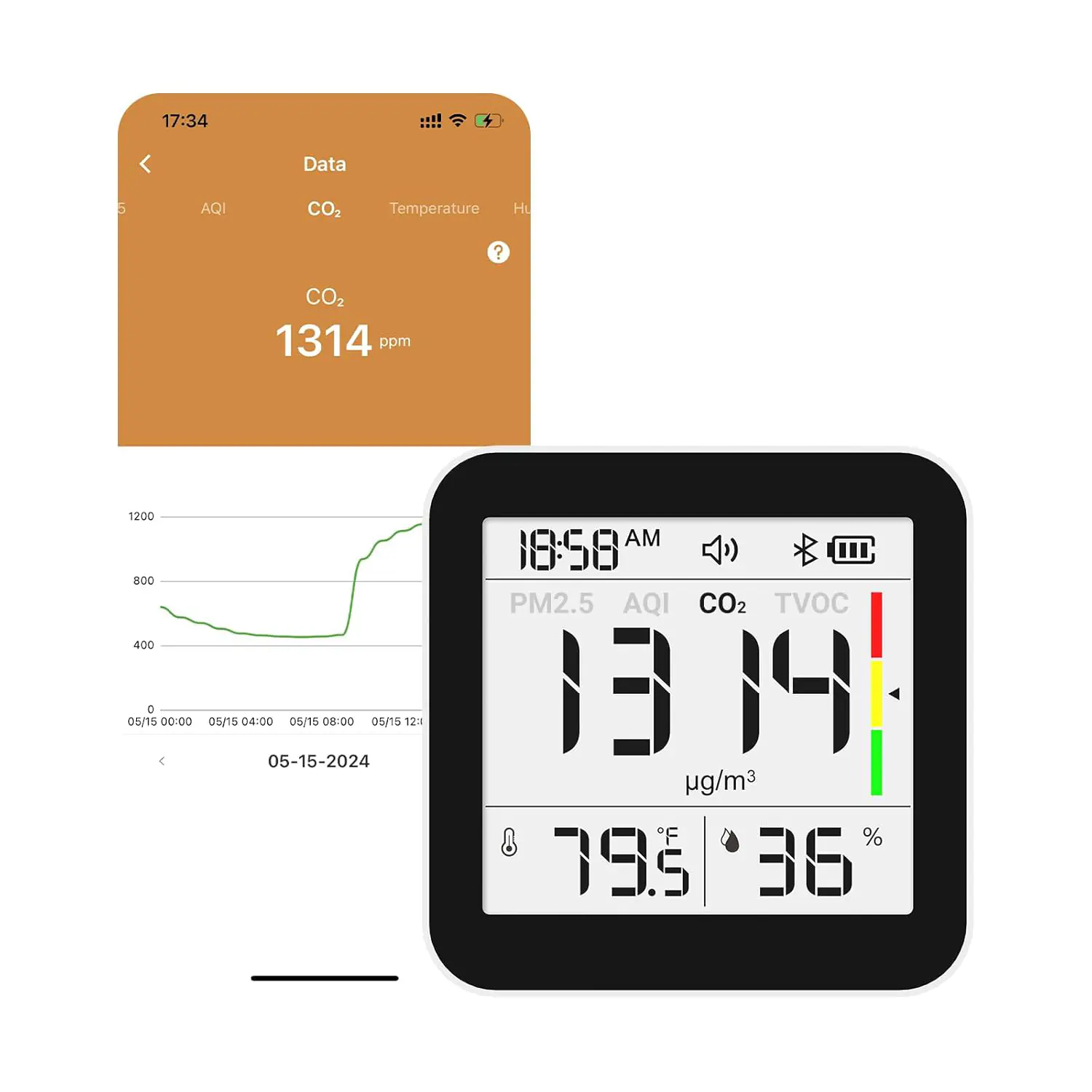 Color :Premium : CO2/Temp/Humidity/PM2.5/AQI/VOC