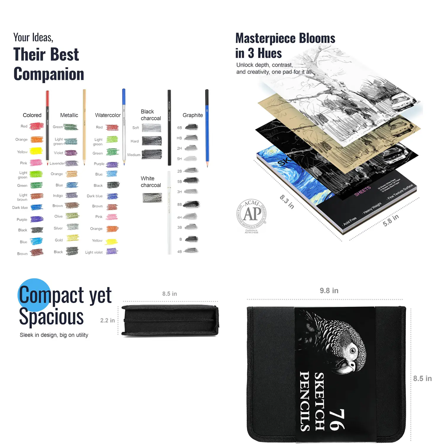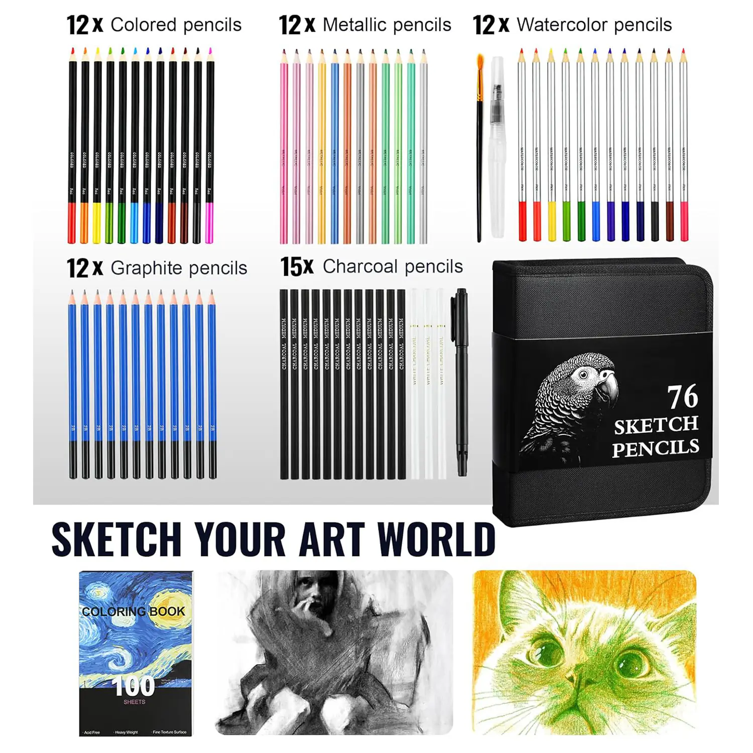 The Wholesale Art Supplies Kit is a complete creative solution featuring 176 pieces, including 76 premium tools and a 100-sheet, 3-color sketchpad. Designed for artists, students, and creative professionals, it includes graphite, watercolor, charcoal, metallic, and colored pencils to support sketching, blending, and shading. This all-in-one set is ideal for distributors and art retailers seeking high-value, versatile drawing kits for educational institutions, art studios, and gift markets.