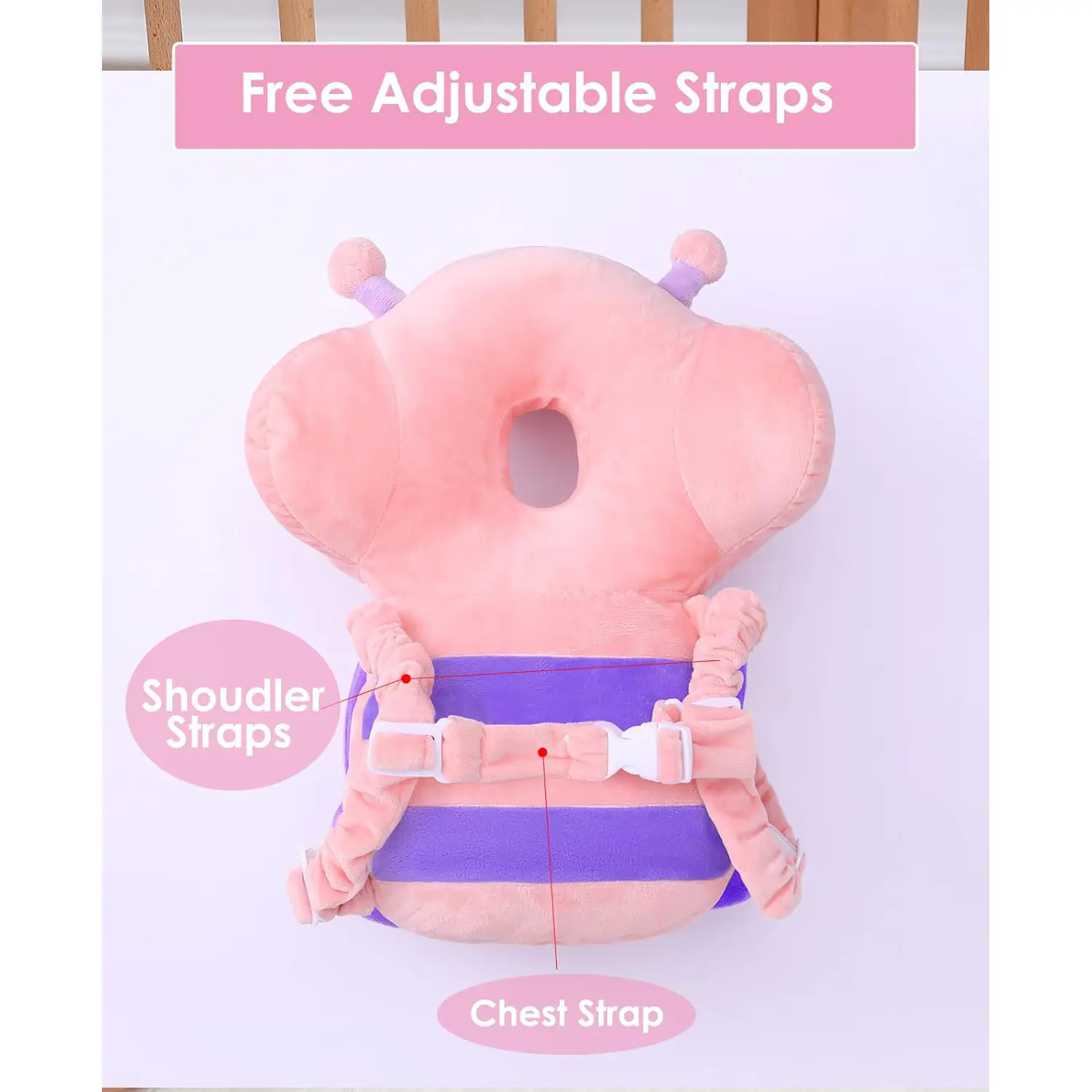 Made from ultra-soft crystal velvet and filled with high-elastic PP cotton, this wholesale baby head protection backpack offers superior cushioning and breathability. The adjustable shoulder and chest straps adapt to growing babies, ensuring a secure yet gentle fit. Its cute cartoon designs—like the pink butterfly or brown bear—appeal to both children and parents, boosting product appeal on retail shelves.