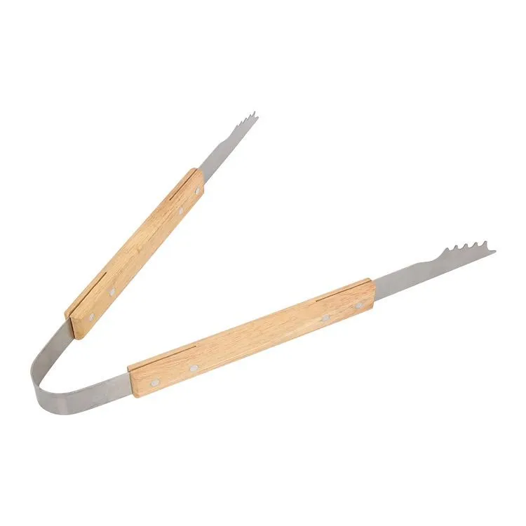 We are professional wholesale BBQ grill tong supplier from China. This gril tong is a perfect BBQ tool to pick up food of any size. It’s made of stainless steel and wood, durable and food safe, no heat transfer when using.