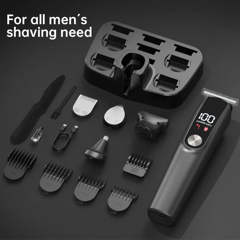 Standard Features : T-shaped clipper + 3 mm/6 mm/9 mm/12 mm limit comb, U-shaped clipper +adjustable limit comb (2-8 mm), styling blade, nose trimmer, micro shaver, USB charging cable