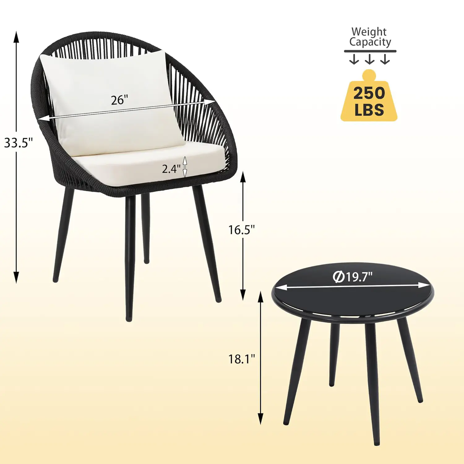 What sets this Wholesale Bistro Set apart is its breathable rope backrest and thickened cushions that deliver comfort and style. Adjustable feet ensure stability on different surfaces, while detachable cushion covers allow for quick cleaning. The lightweight yet sturdy design offers durability without compromising portability, making it ideal for varied commercial and residential settings.