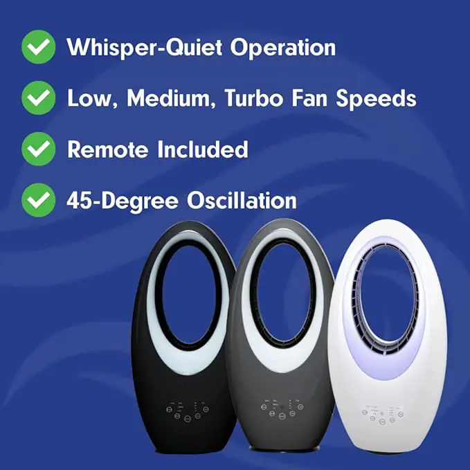 Special Feature : 3 Speeds, Air Filter, Bladeless, Timer, Whisper Quiet Sound