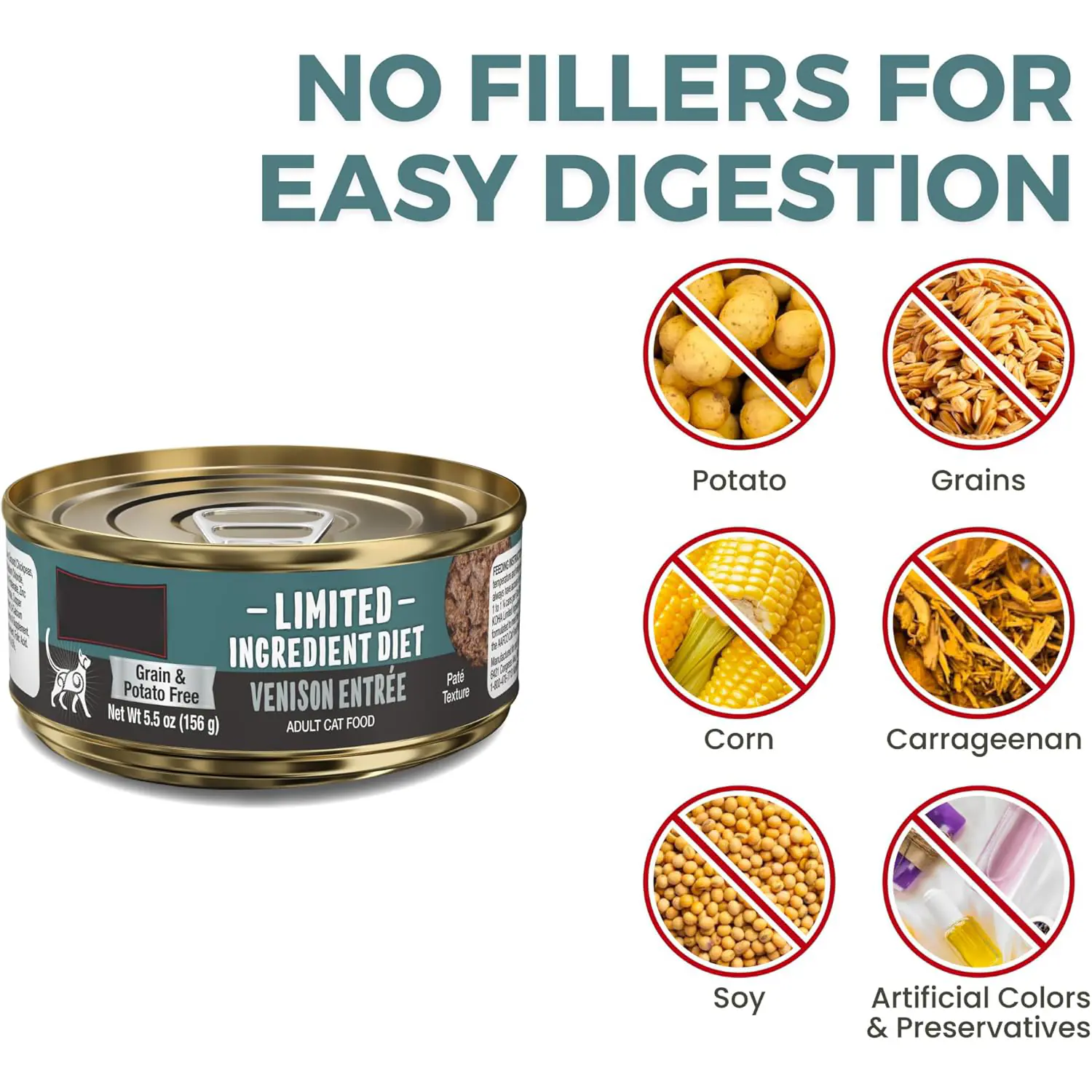 This Wholesale Cat Food features a venison paté formulated as a limited-ingredient diet for cats with severe food sensitivities. Its single-meat, moisture-rich profile supports digestion and daily nutrition, making it a strong retail option for stores specializing in sensitive-stomach wet diets.
