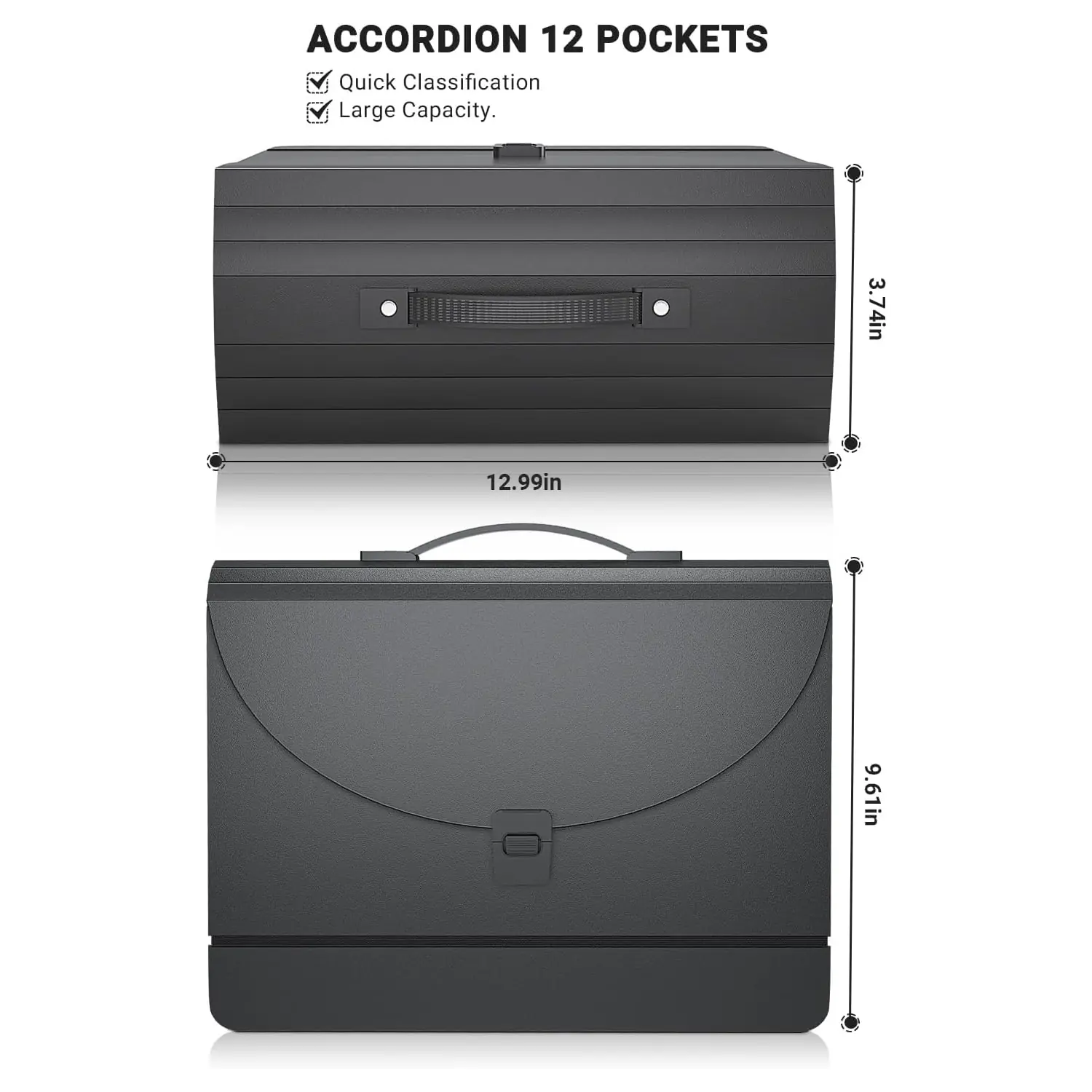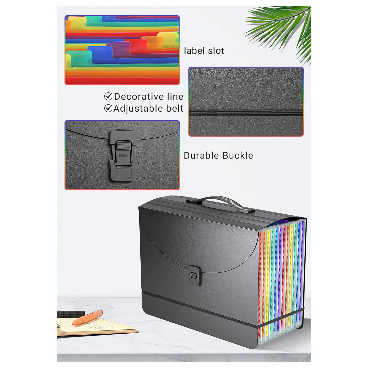 The Wholesale File Organizer with 13 expanding pockets offers a stylish and efficient solution for managing documents in offices, schools, or homes. Designed to fit both A4 and letter-size papers, it features a durable ergonomic handle and secure buckle for easy transport. This expanding file box accommodates over 1500 sheets, providing flexible storage for invoices, reports, and client records. Ideal for B2B buyers, it helps improve organization, save space, and maintain professionalism across workplaces and retail supply chains.
