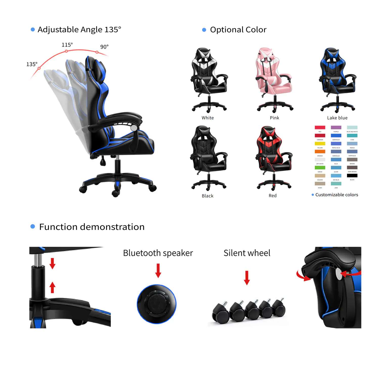 Ideal for resale to gaming lounges, e-commerce platforms, office suppliers, and furniture retailers, the Wholesale Gaming chair with Bluetooth speaker fits diverse markets. Whether placed in home gaming setups, streaming studios, or modern offices, it offers immersive entertainment and ergonomic support. Its versatility ensures strong demand among both casual and professional users, creating profitable opportunities for wholesale buyers.