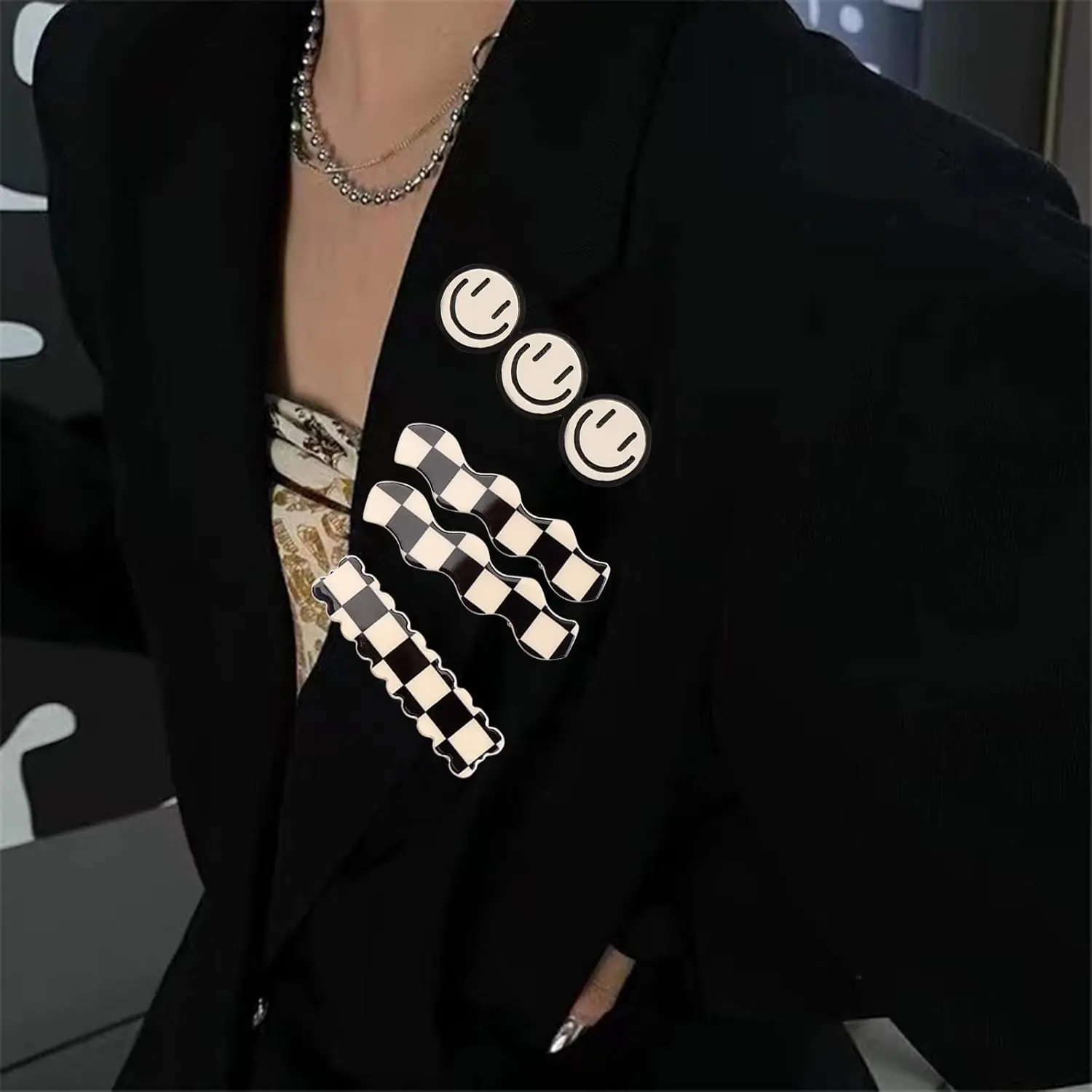 These Wholesale Hair Clips feature a minimalist black-and-white checker design, including 16 pieces in various geometric shapes such as waves, biscuits, mosaics, and water drops. Made from durable acrylic and high-quality metal springs, they offer a firm yet gentle hold without bending or creasing the hair. Ideal for professional hairstylists, beauty salons, or accessory retailers, these clips combine style and practicality for daily use, hair styling, or retail resale. A perfect addition to any wholesale hair accessories collection.