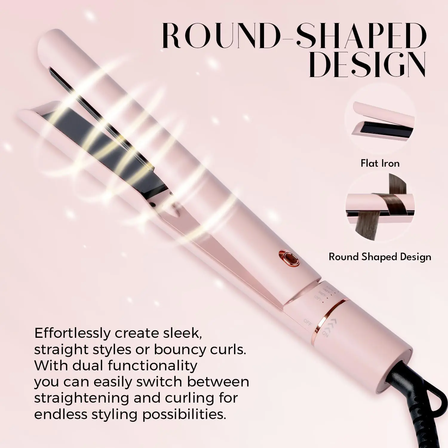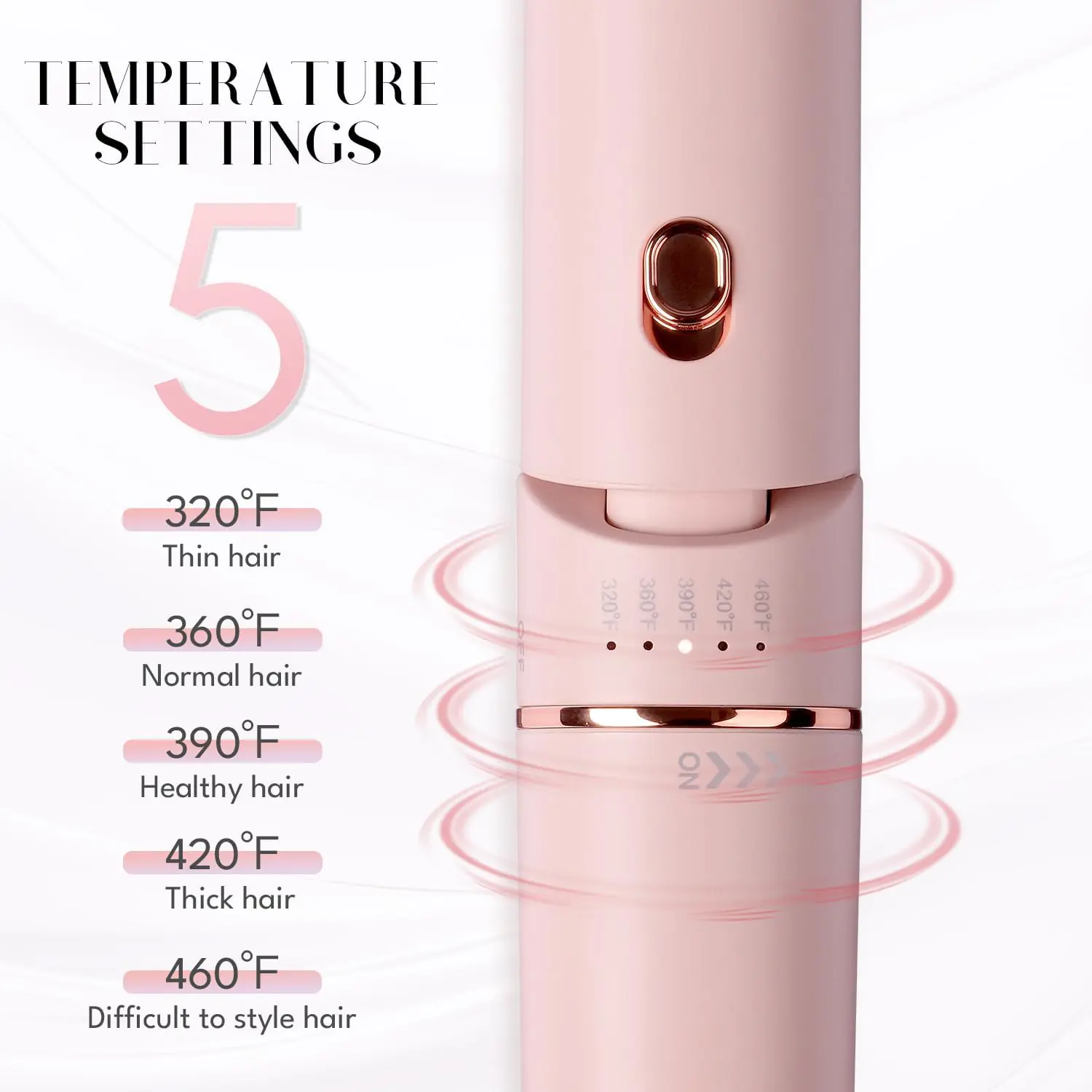 Featuring advanced titanium plates with infrared heating and 2 million negative ions, this Wholesale Hair Straightener provides even heat distribution, reduces hair damage, and enhances shine. The 3D floating plate and auxiliary curling design make it versatile, while five temperature settings ensure precision for every hair type. Safety features like auto shut-off and dual voltage boost global market appeal.