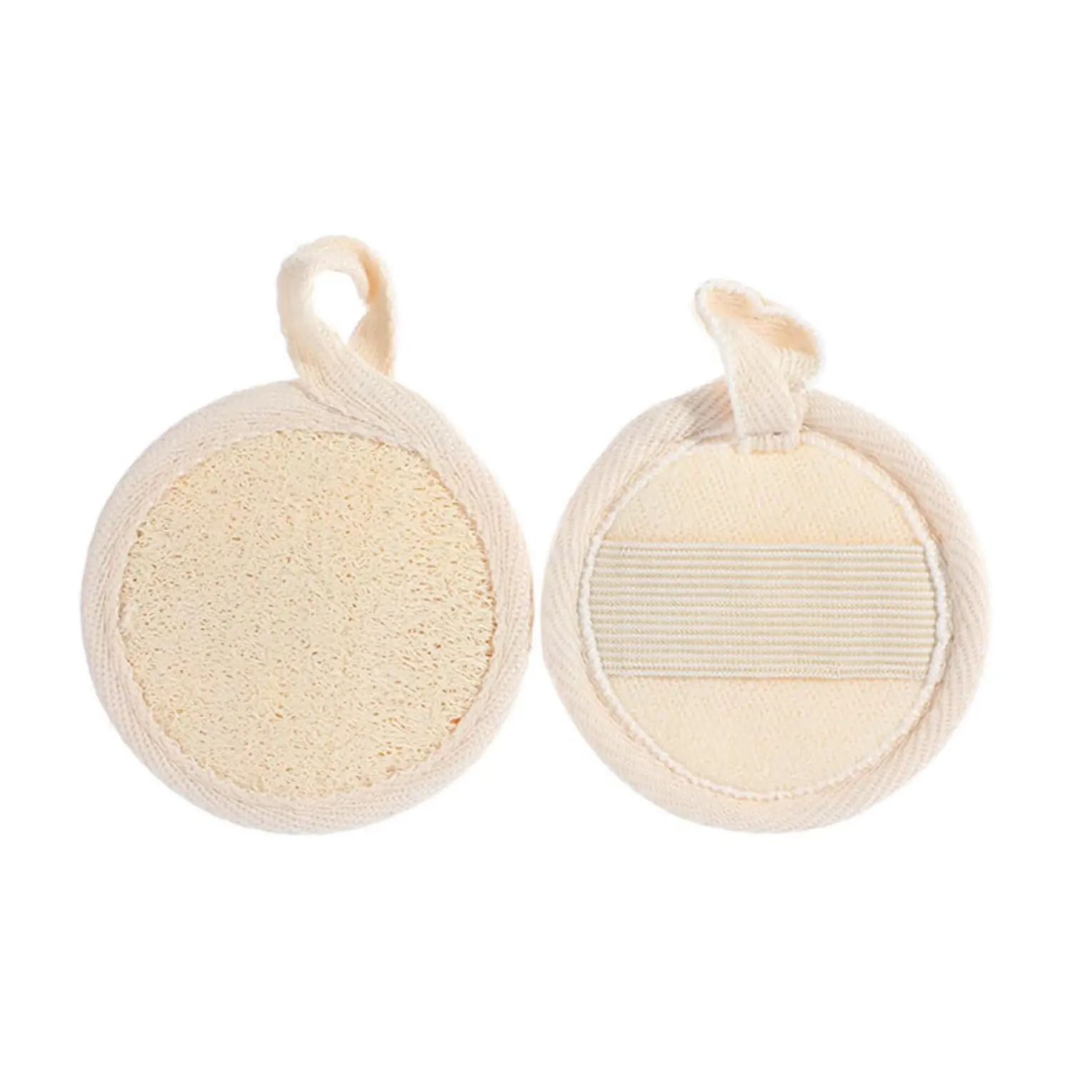 Each wholesale loofah sponge pad features a dual-sided design: the natural loofah side gently exfoliates, while the terry cloth backing effectively wipes away oils and impurities. With reinforced anti-fray edges and a built-in strap for better grip, these pads are durable, reusable, and easy to hang-dry—perfect for sustainable product lines and bulk retail programs.