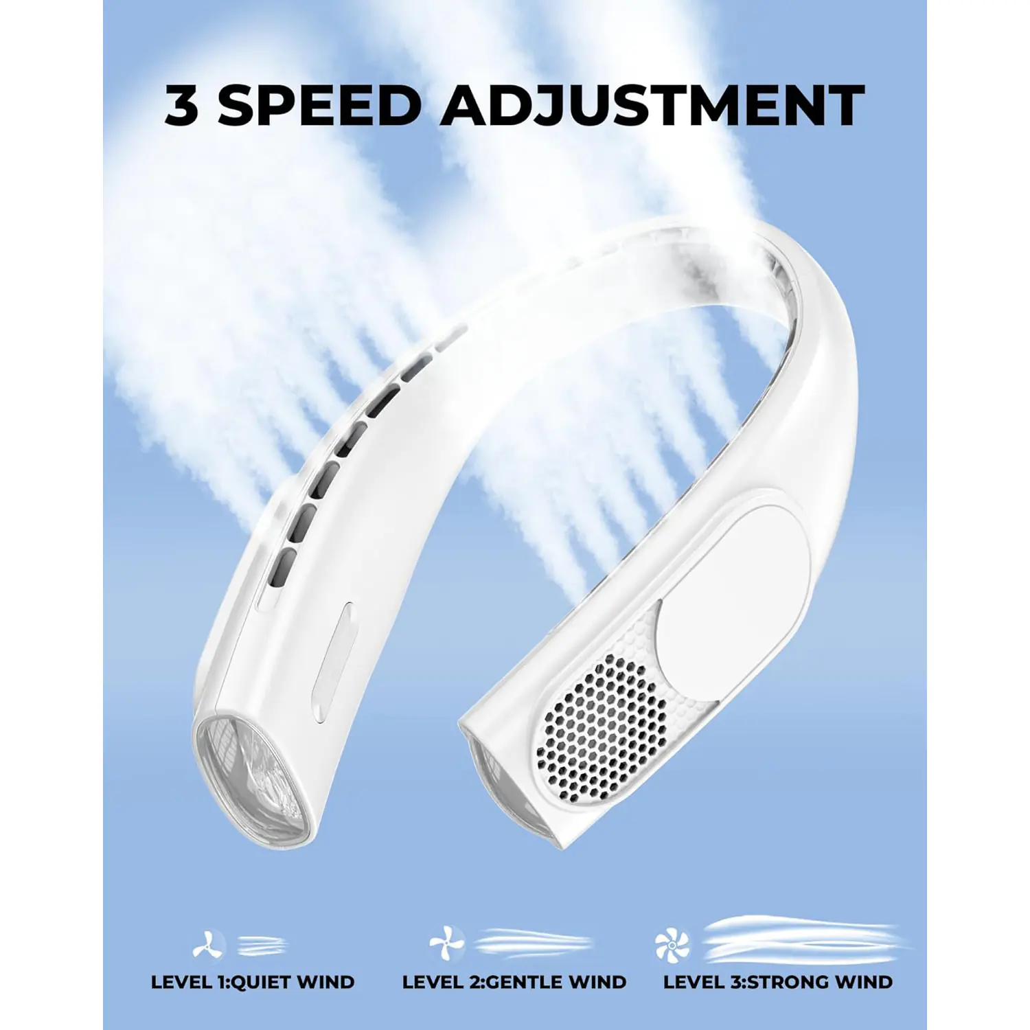 Designed for safety and convenience, the Wholesale Neck Fan features a bladeless structure to prevent hair entanglement, three adjustable speeds for customized airflow, and quiet operation under 40dB. The USB Type-C fast charging system ensures quick turnaround, while its secure, comfortable fit appeals to users of all ages. This combination of portability, performance, and safety makes it an excellent wholesale option for high-demand seasonal markets.